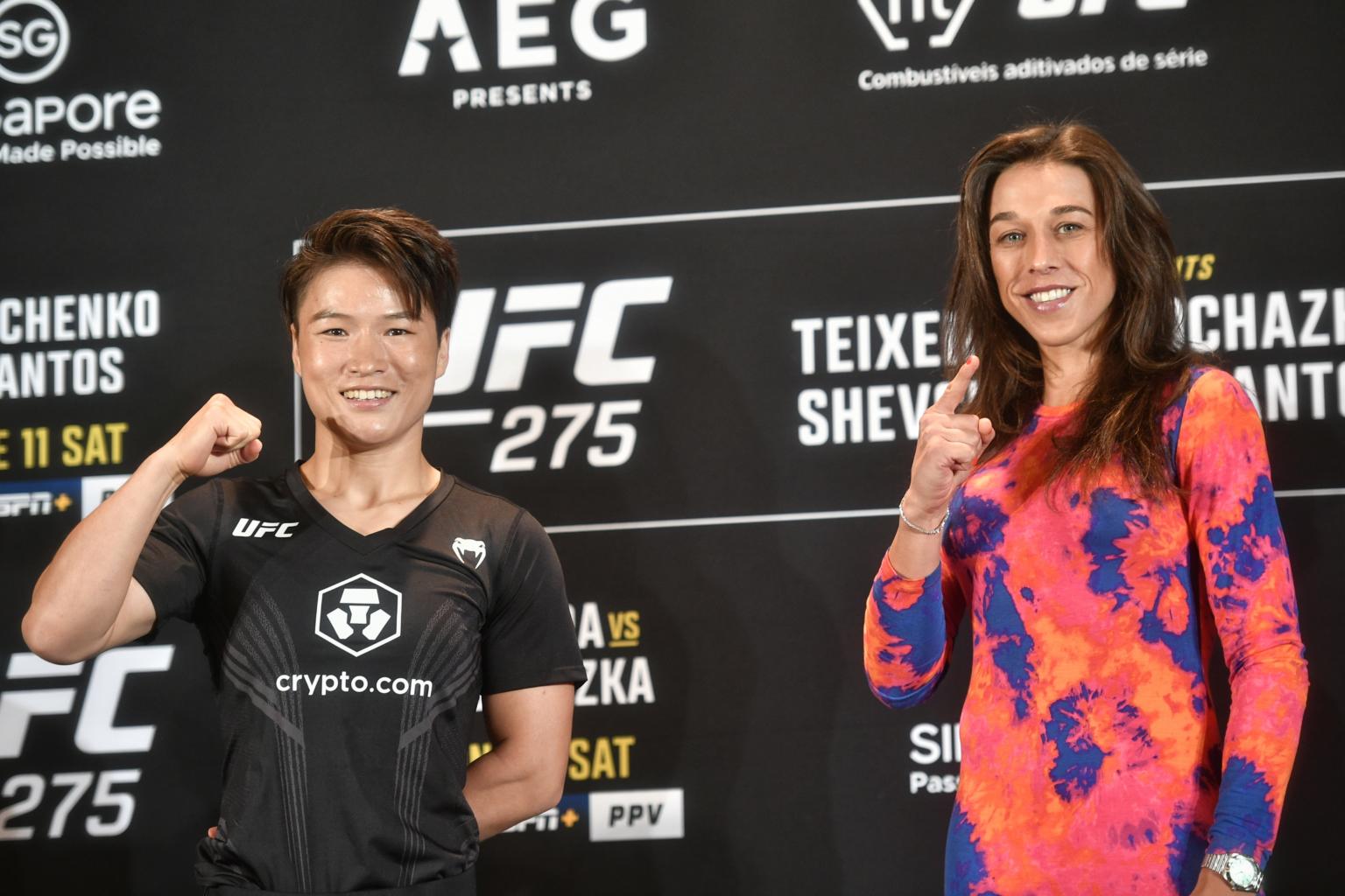 The two Ultimate Fighting Championship (UFC) stars shared a stage on Wednesday (June 8) at the Mandarin Oriental Hotel ahead of their bout at UFC 275 at the Singapore Indoor Stadium on Sunday.