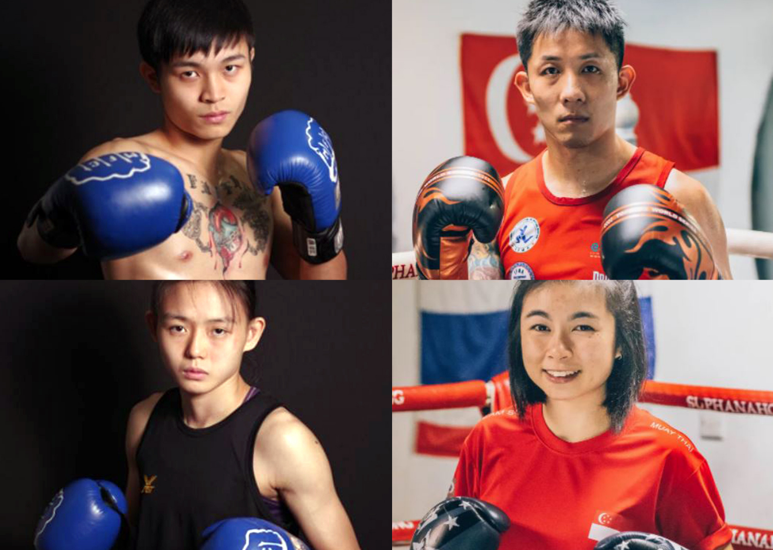 Clockwise from top left: Lee De Jun, Kai Chai Quan, Tan Xuan Yun and Cheryl Gwa were scheduled to compete at the International Federation of Muaythai Associations' Senior World Championships in Abu Dhabi.