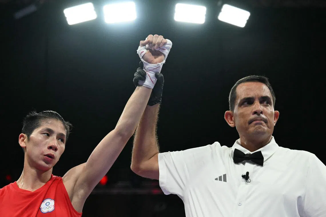 Chinese Taipei’s Lin Yu-ting is declared victorious at the end of her Aug 2 fight against Uzbekistan’s Sitora Turdibekova.