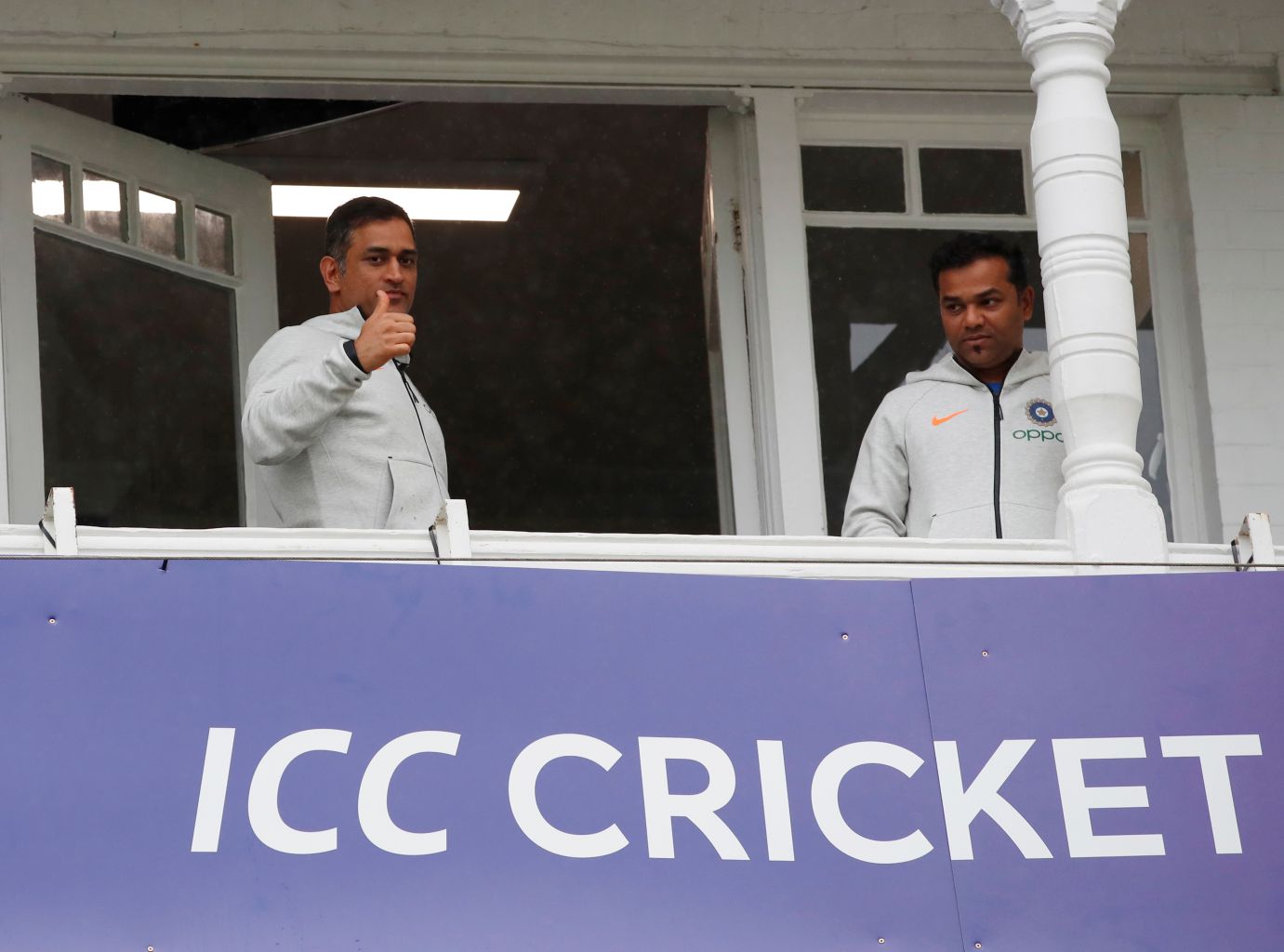 India's MS Dhoni during a rain delay.