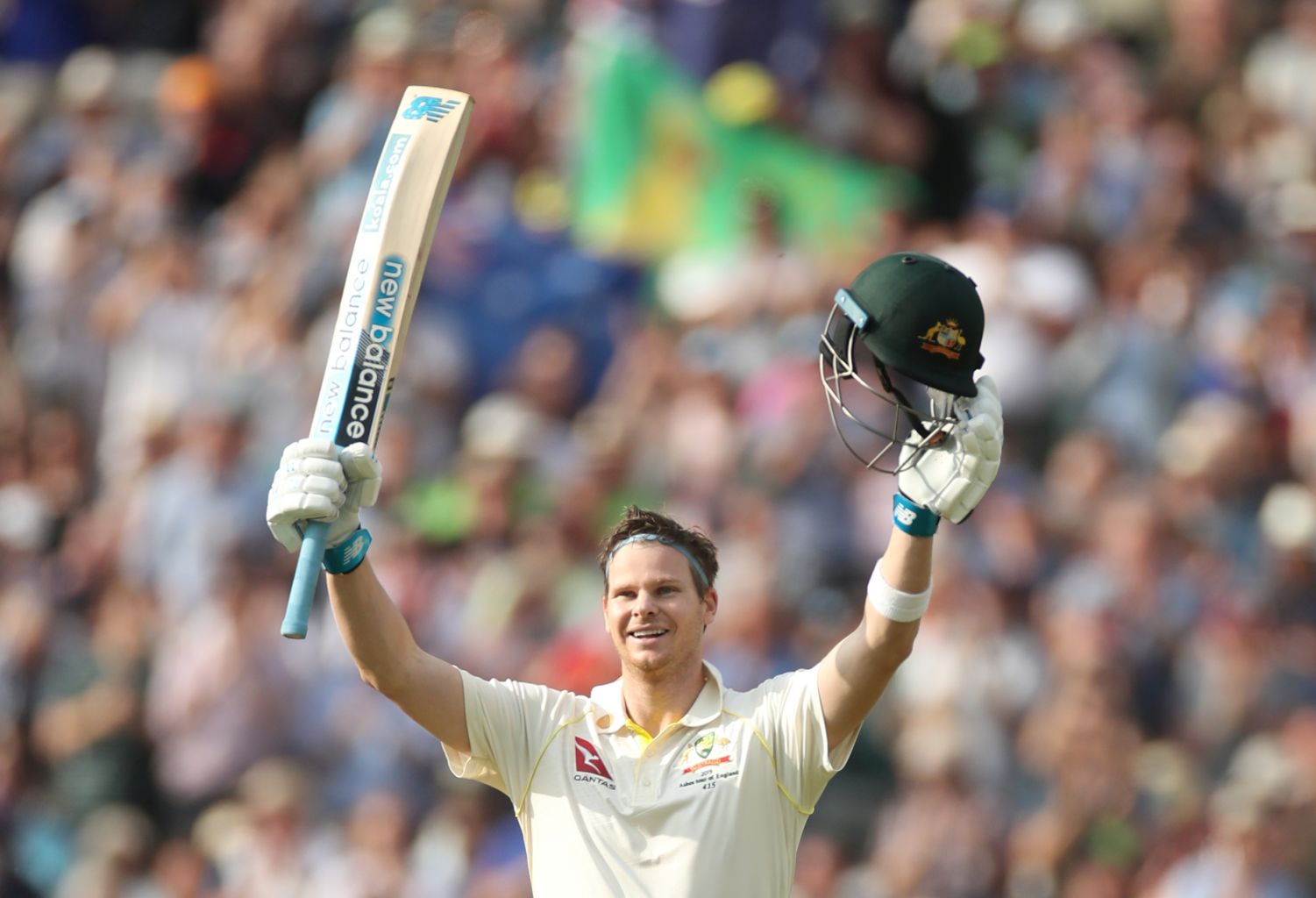 Australia's Steve Smith celebrates his century.