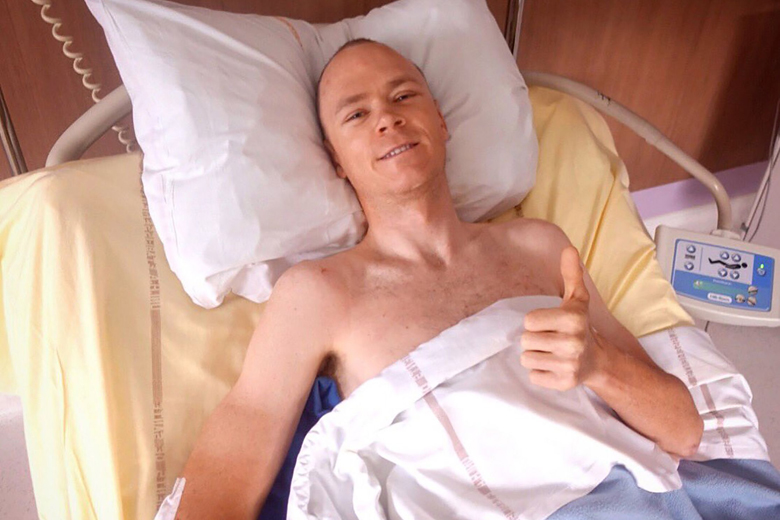 Chris Froome broke his neck, femur, elbow, hip and ribs when he crashed before stage four of the Criterium du Dauphine in France in June.