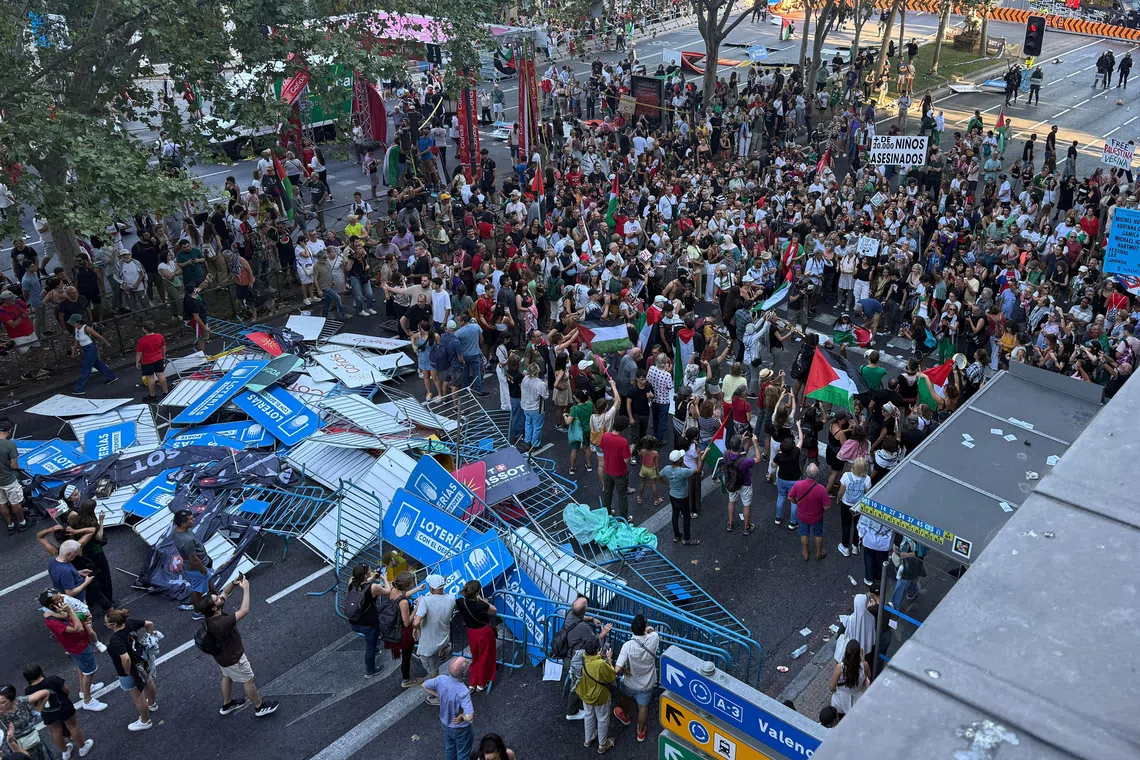 Spanish Prime Minister Pedro Sanchez, who has talked of “the genocide in Gaza”, even expressed “deep admiration” for the protesters and called for a sporting ban on Israel, a position which drew criticism from the UCI on Sept 15, who said it “calls into question Spain’s ability to host major international sporting events”.