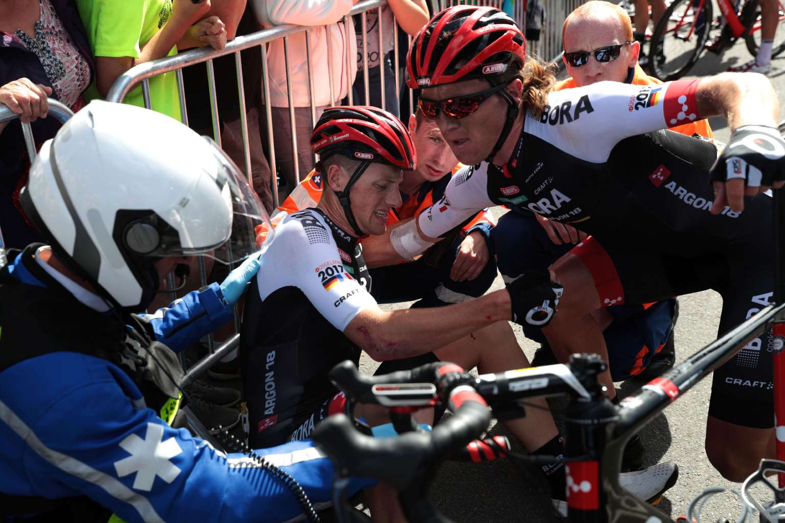 Several other riders were also brought down by the crash, including Norway's Edvald Boassen Hagen, the Dimension Data team-mate of stage winner Mark Cavendish.