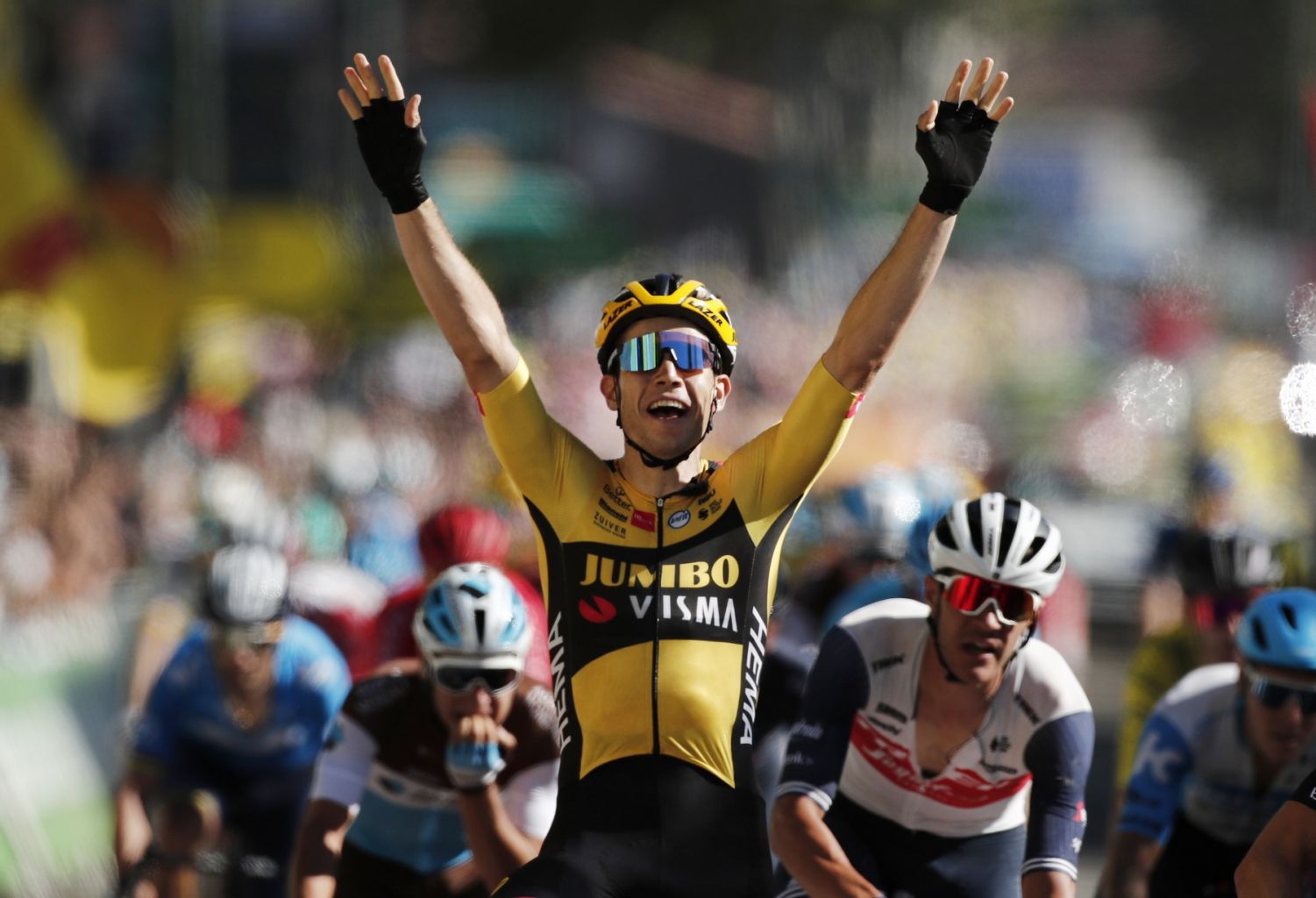 Van Aert of Belgium wins the stage.