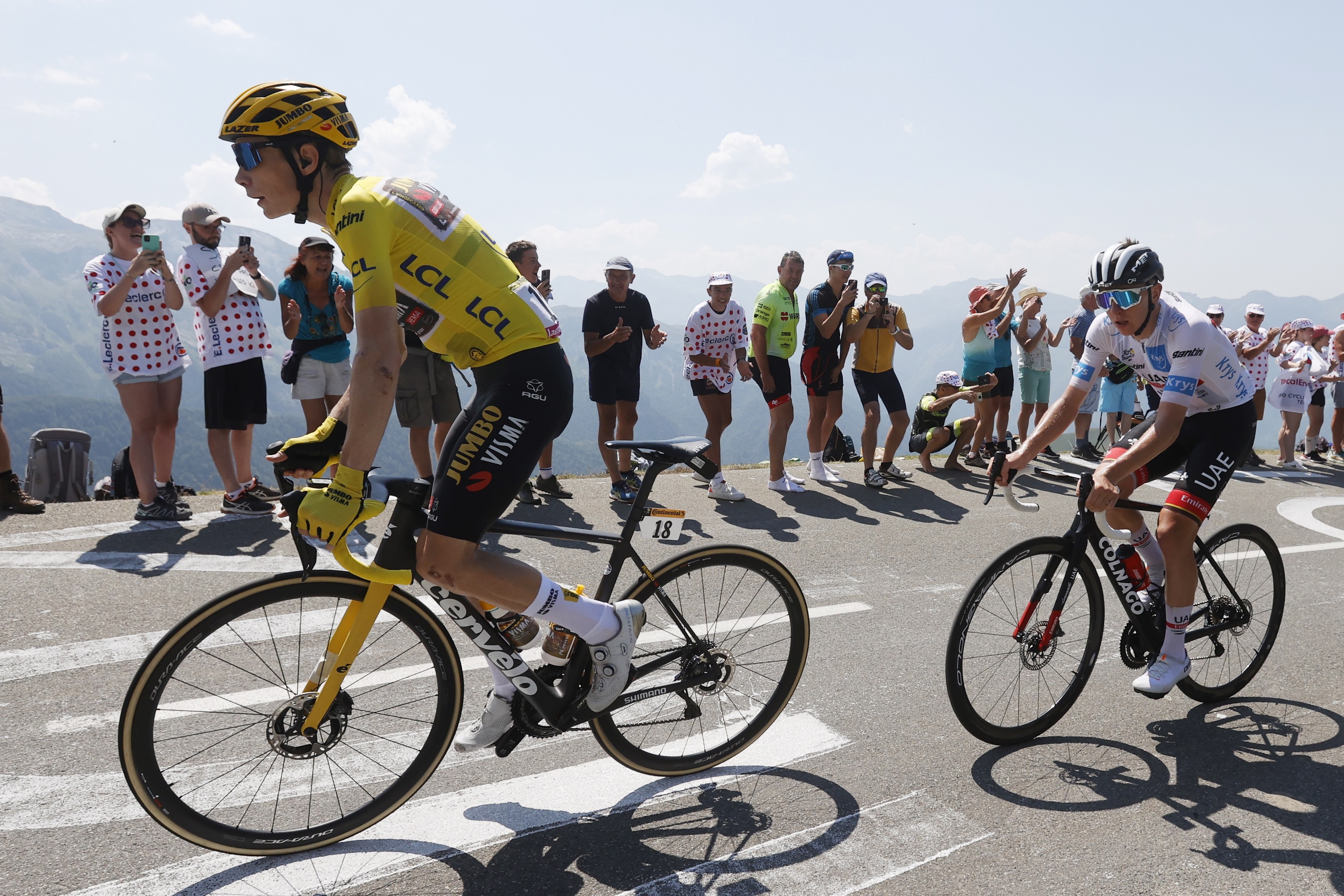 The pair have been shadowing each other the entire race, with Pogacar winning three stages and taking the overall leader's yellow jersey by stage seven, before Vingegaard took it off him in the baking heatwave in the Alps.