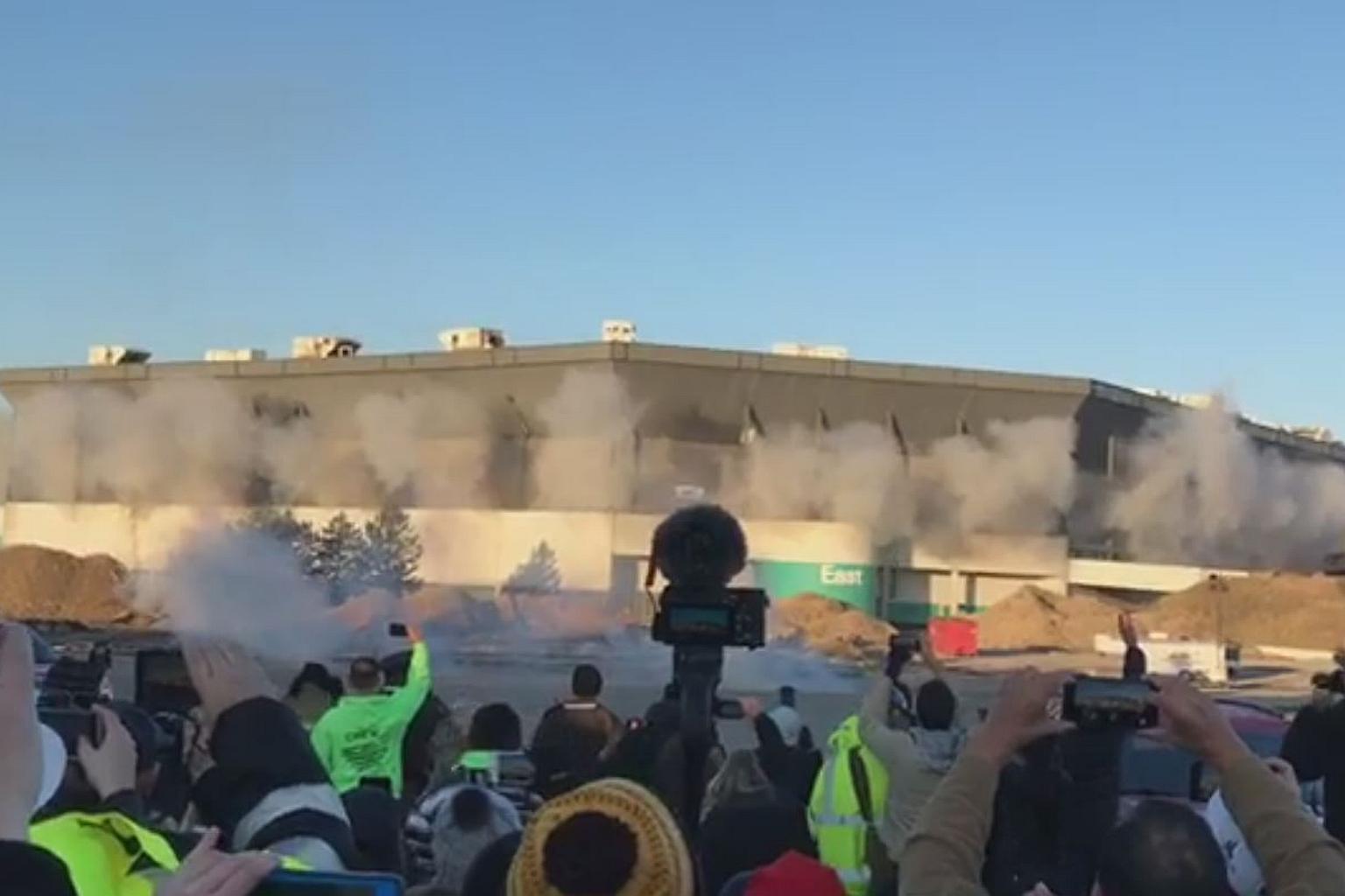DETROIT (REUTERS) - A plan to demolish a derelict NFL stadium near Detroit went awry on Sunday (Dec 3)when a deafening series of blasts failed to topple the Pontiac Silverdome, to the frustration of officials and the bemusement of a crowd gathered to watch the spectacle.
