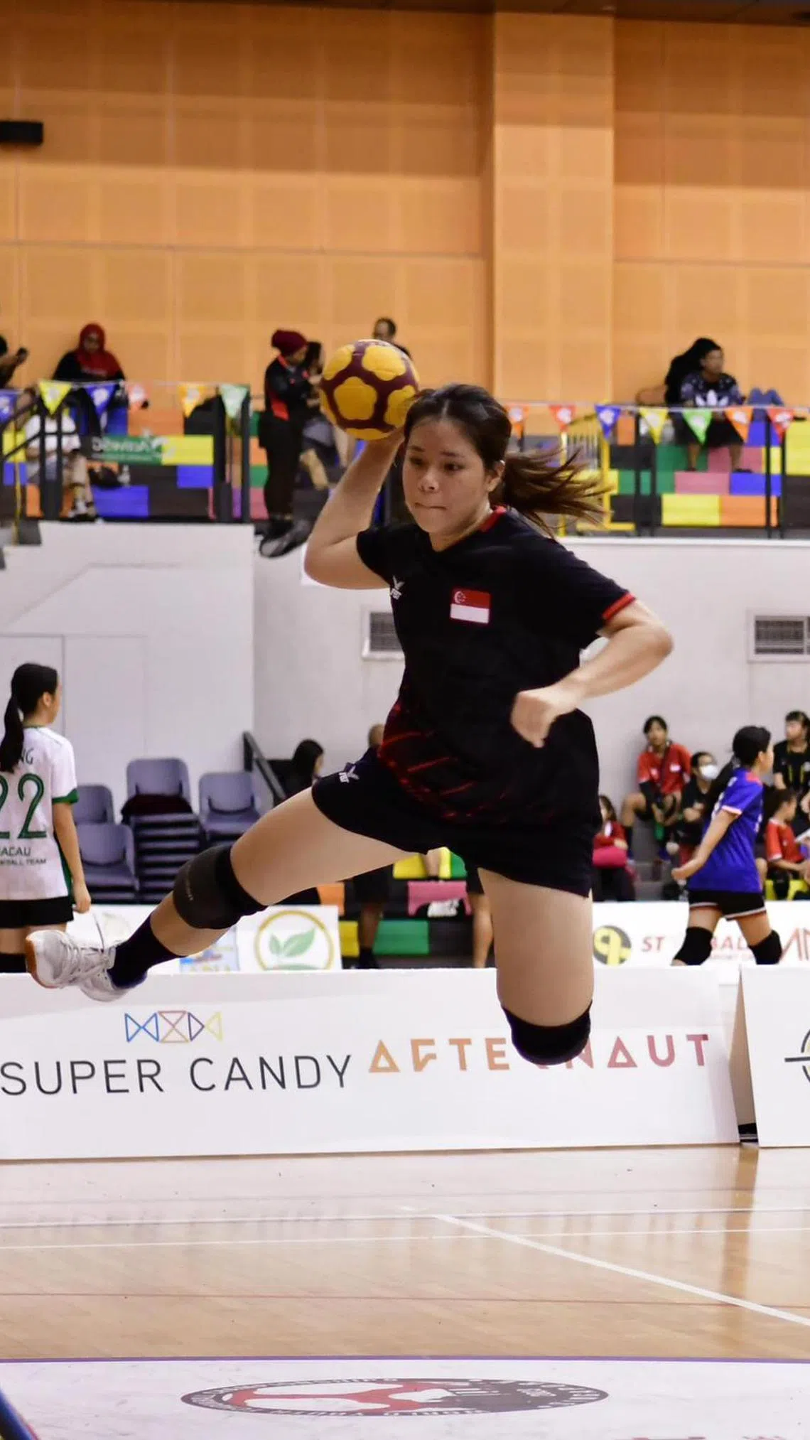 Singapore's Ayden See soaring high to score against Chinese Taipei at the World Youth Tchoukball Championships.
