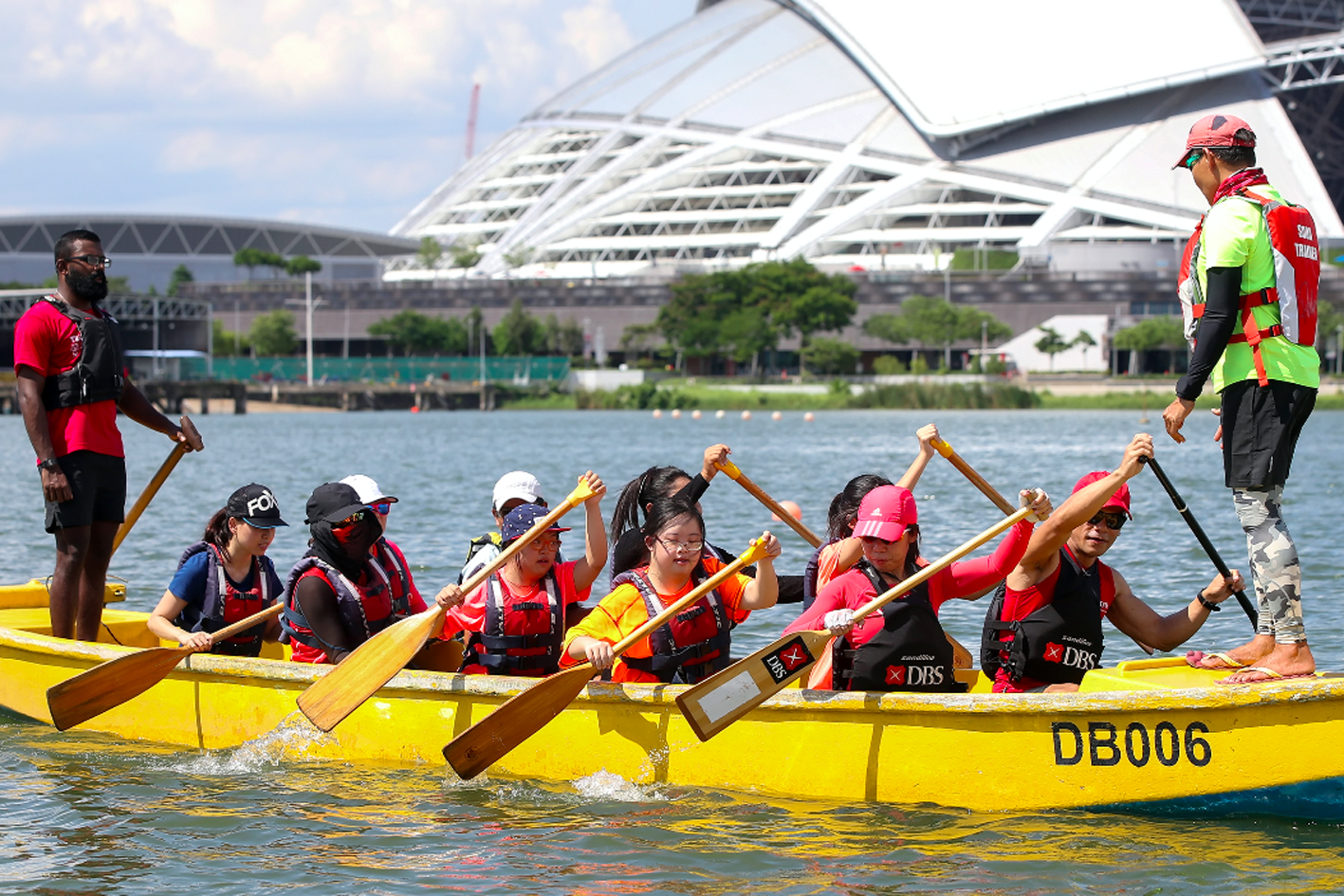 A three-week training programme led by certified coaches and assisted by DBS employees was introduced to teach participants the basics of the sport, including techniques, dragon boating terms and water safety procedures.