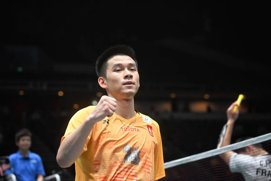Thailand’s Kunlavut Vitidsarn competing against France’s Christo Popov at the Singapore Badminton Open.