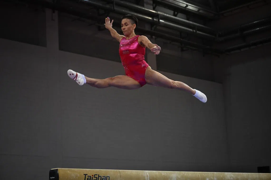 Oksana Chusovitina of Uzbekistan competing during the Asian Artistic Gymnastics Championships 2023 at the OCBC Arena on June 16.
