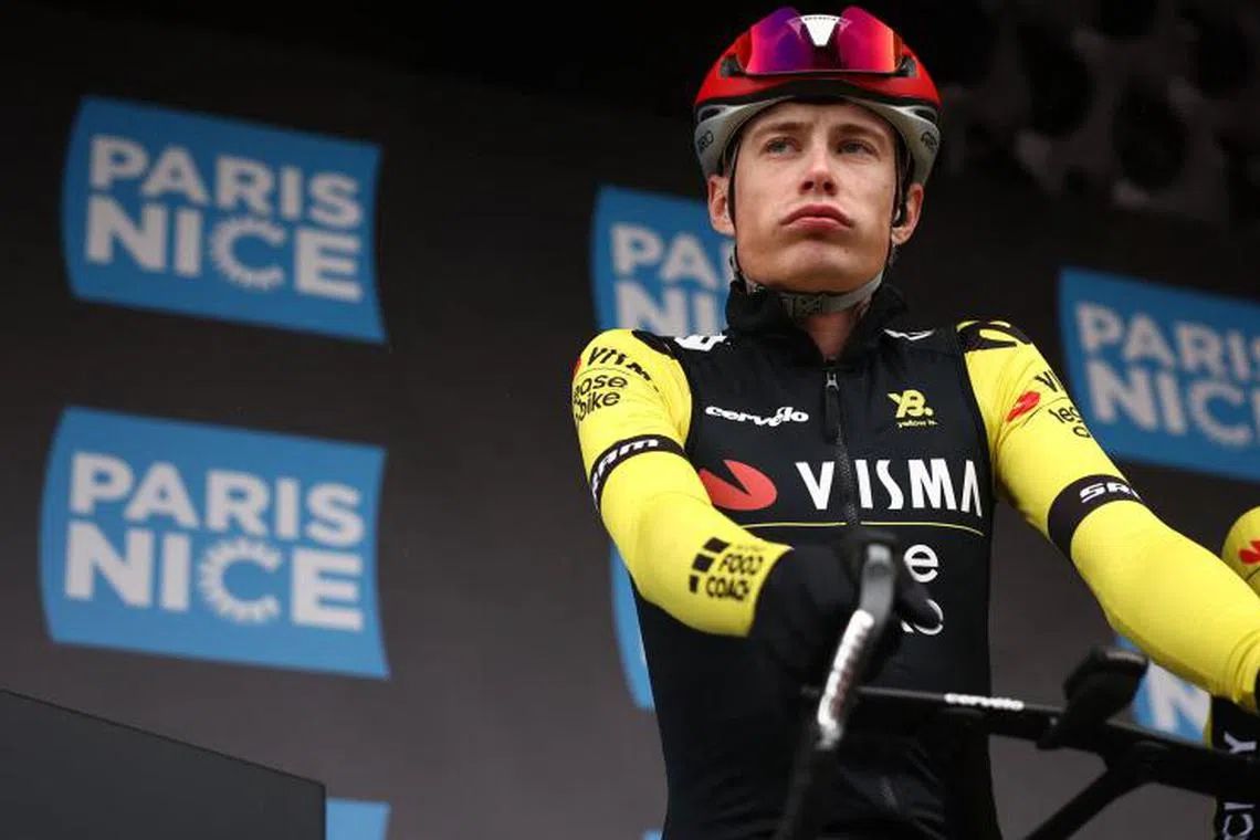 Team Visma-Lease a Bike’s Danish rider Jonas Vingegaard reacts prior to the start of the 5th stage of the Paris-Nice cycling race on March 13.