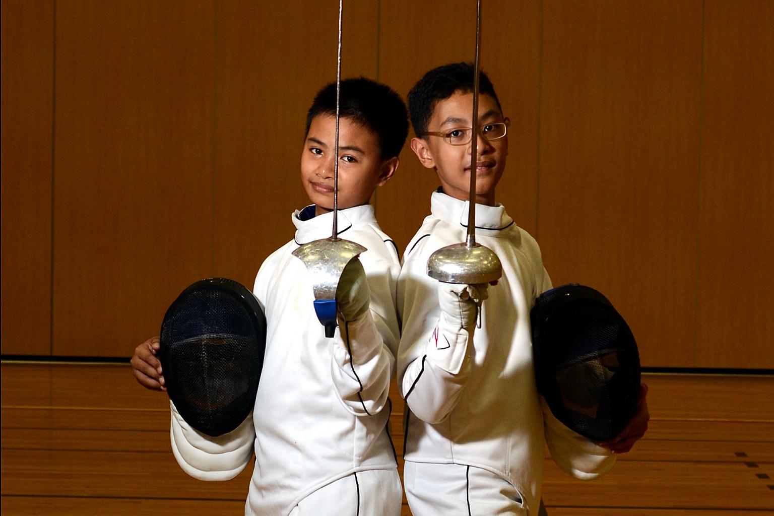 Ahmad Huzaifah Saharudin (left), pictured in 2013, will be one of four fencing debutants at the Southeast Asian (SEA) Games later in August.