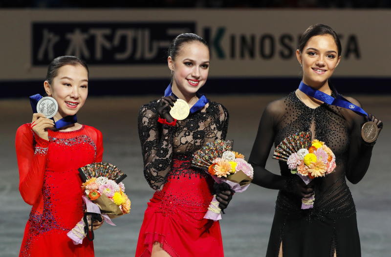 Olympic silver medallist and two-time world champion Evgenia Medvedeva of Russia took bronze, surmounting a rough transition season after moving to Canada to train with coach Brian Orser, who also coaches top skaters such as double Olympic champion Yuzuru Hanyu.