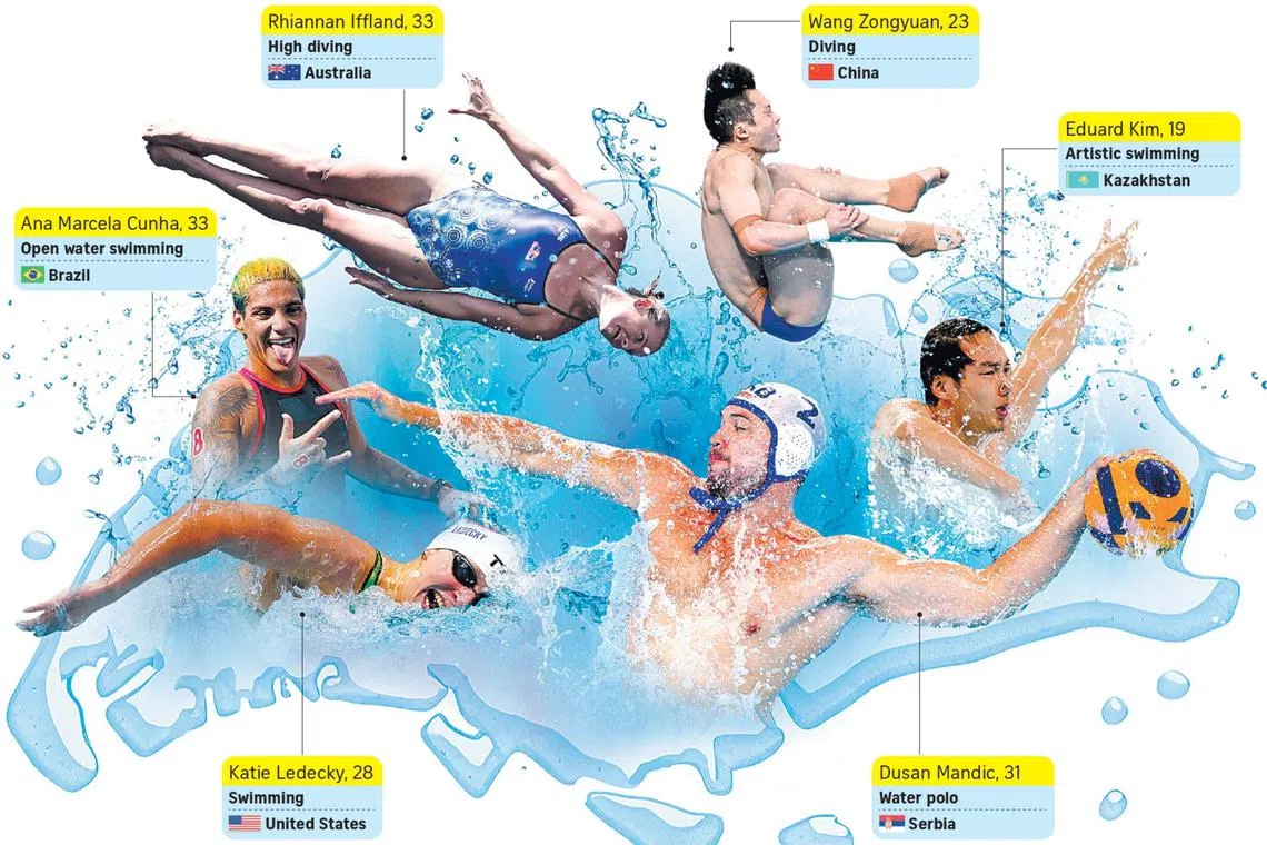 Chinese divers like eight-gold world champion Wang Zongyuan are set to wow spectators with their somersaults, tucks and turns at the OCBC Aquatic Centre, while artistic swimmers such as mixed duet technical routine defending champions Nargiza Bolatova and Eduard Kim, history-makers from landlocked Kazakhstan, will entertain and enthral in the WCH Arena pool with their balletic elegance.