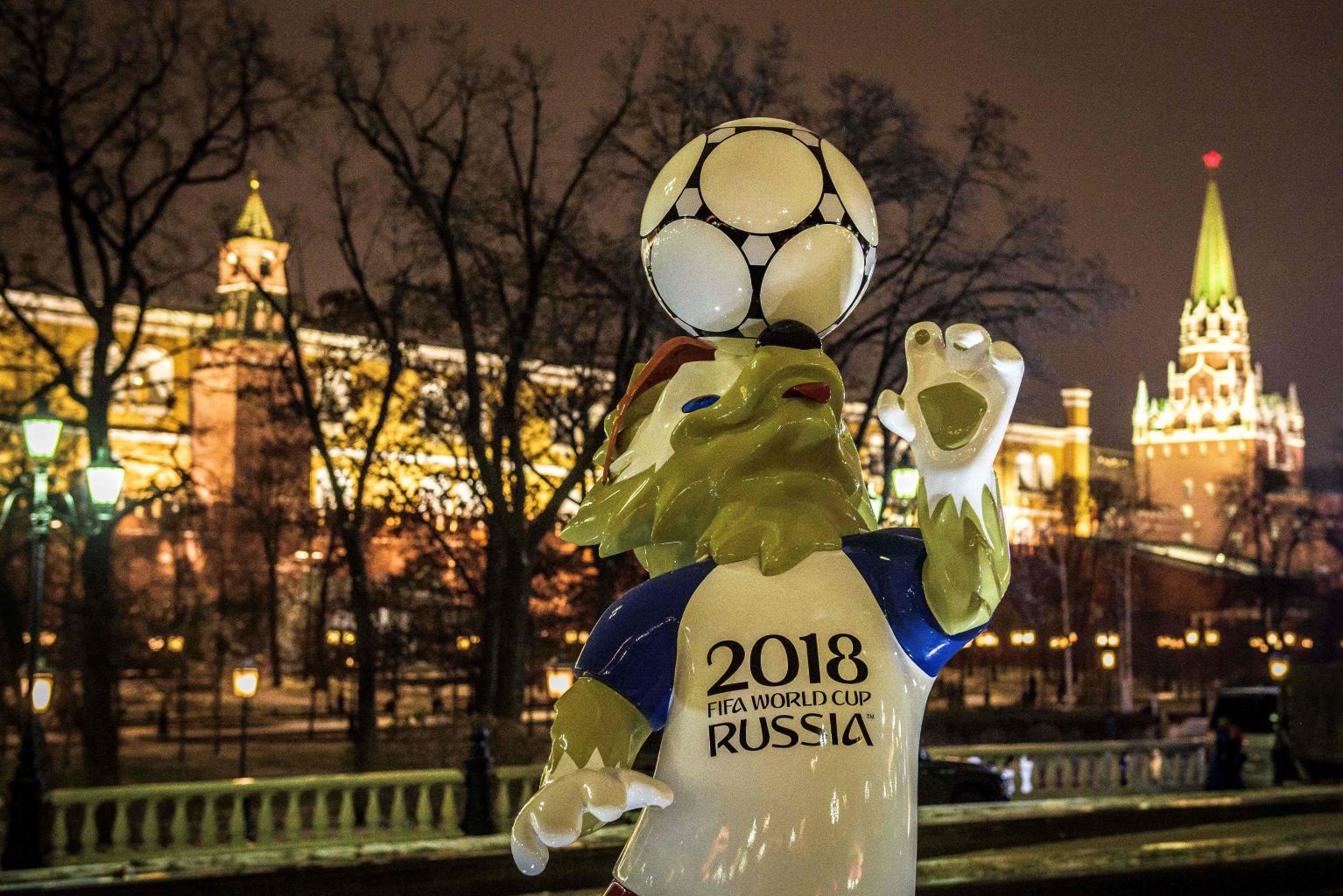 Zabivaka, the official mascot for the 2018 Fifa World Cup, at Manezhnaya square in downtown Moscow.