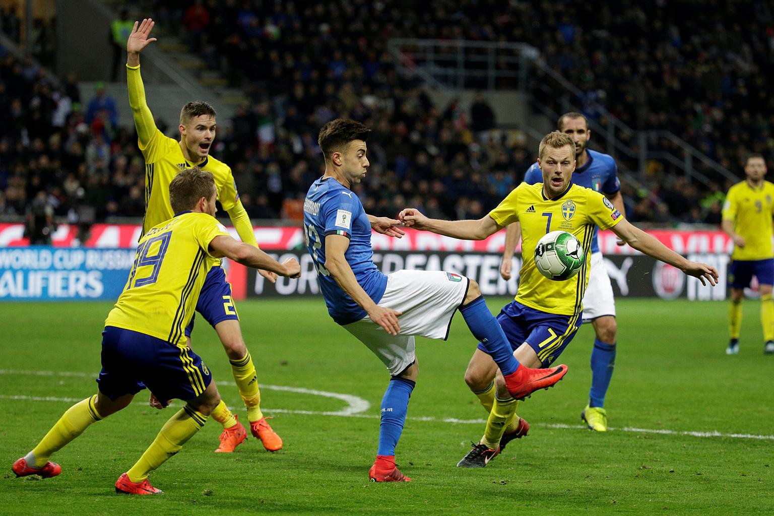 MILAN (REUTERS) - Italy failed to qualify for the World Cup for the first time in 60 years after being held to a 0-0 draw at home to Sweden who booked a place in Russia with a 1-0 aggregate win on Monday (Nov 13).