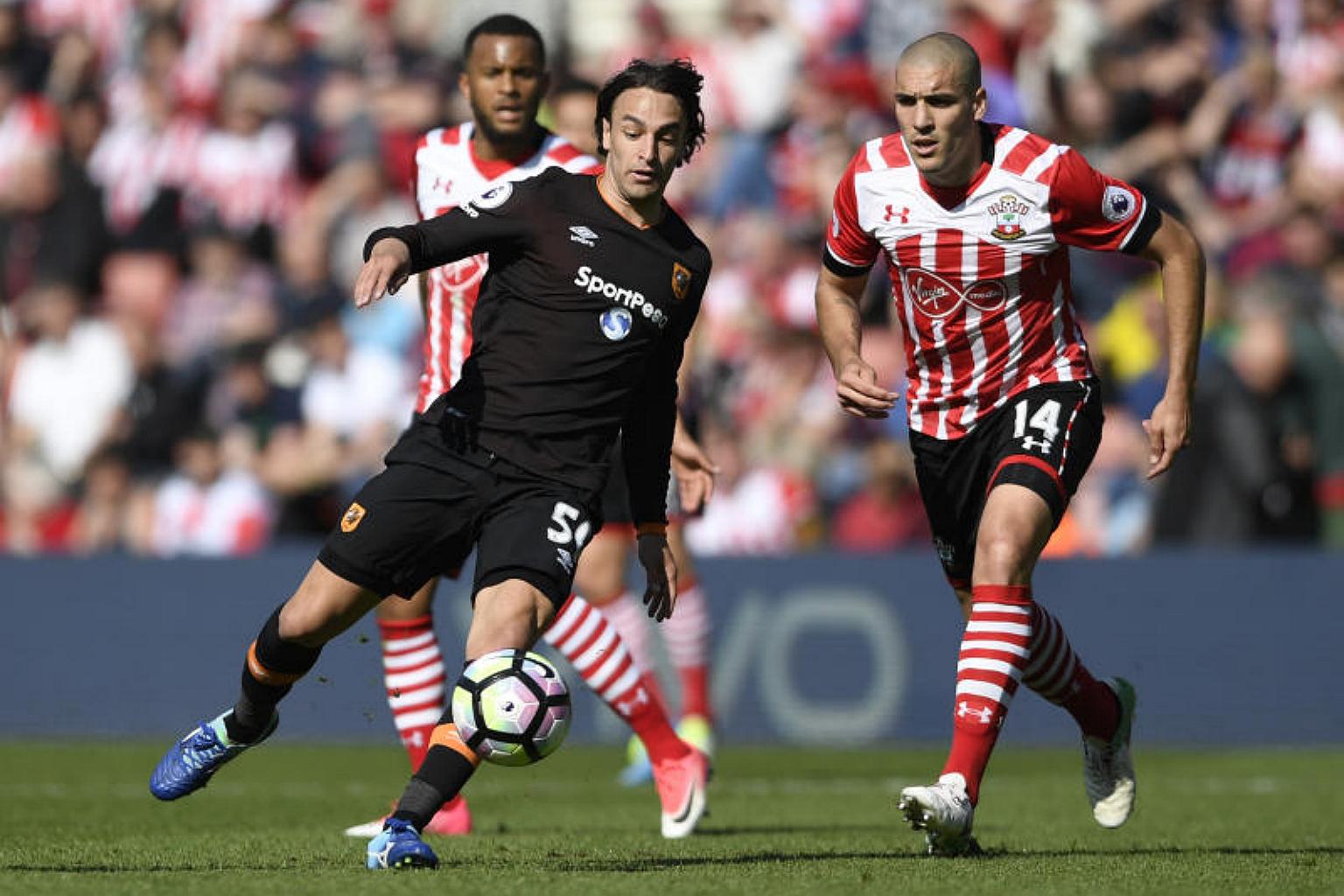 Southampton's Oriol Romeu in action with Hull City's Lazar Markovic.