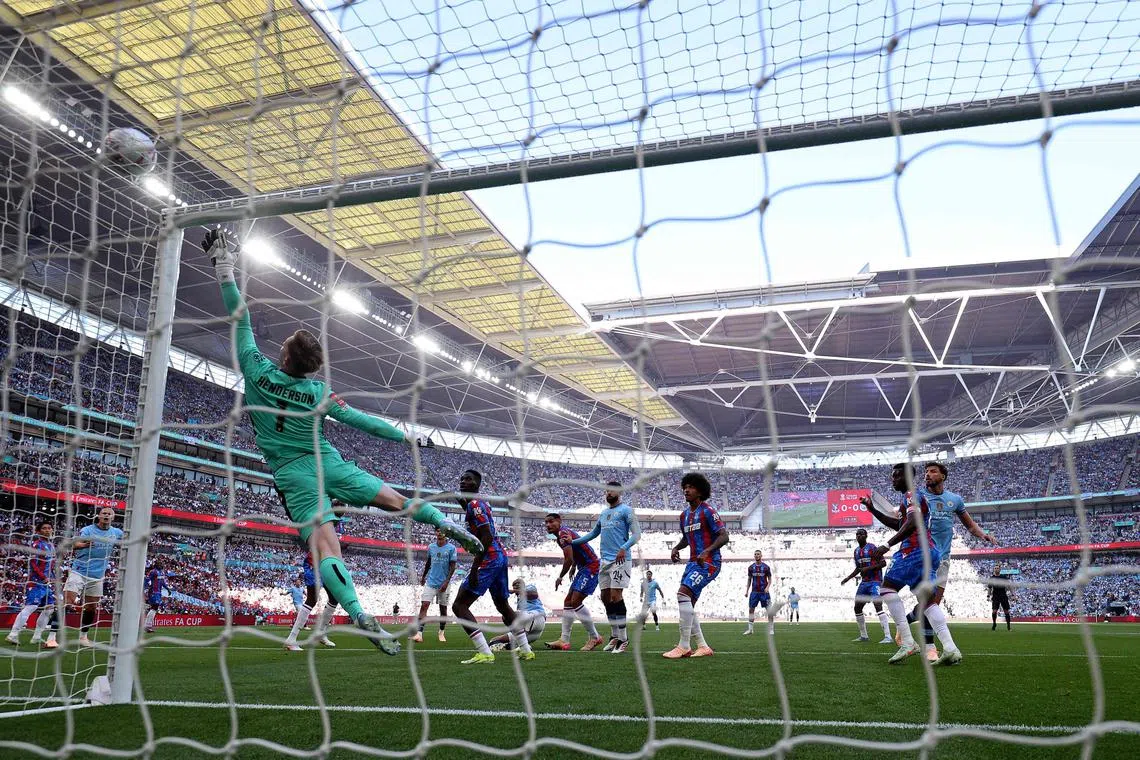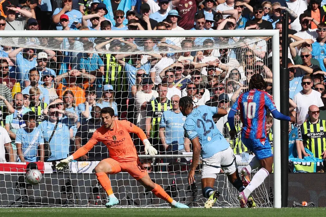Having picked an ultra-attacking lineup shorn of defensive midfielders, City hemmed Palace deep inside their own half for the opening 15 minutes with Kevin de Bruyne pulling the strings on what was his last Wembley appearance in City colours.