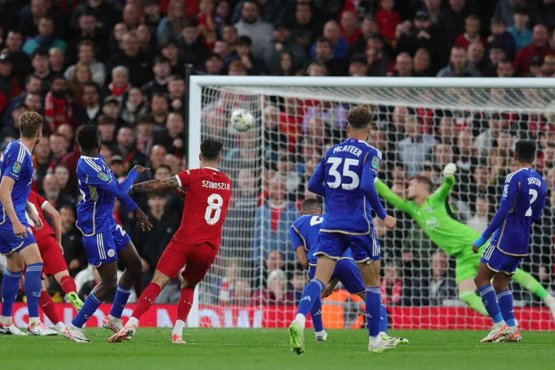 Dominik Szoboszlai scores Liverpool’s second goal.