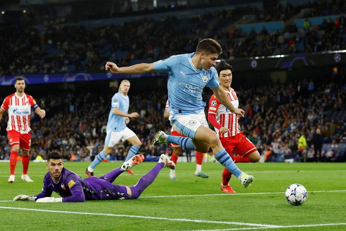 LONDON – Manchester City manager Pep Guardiola rued poor finishing from his attackers, but was thankful that Julian Alvarez’s double saved the team’s blushes in their 3-1 Champions League win on Tuesday, after minnows Red Star Belgrade took a shock lead at the Etihad.