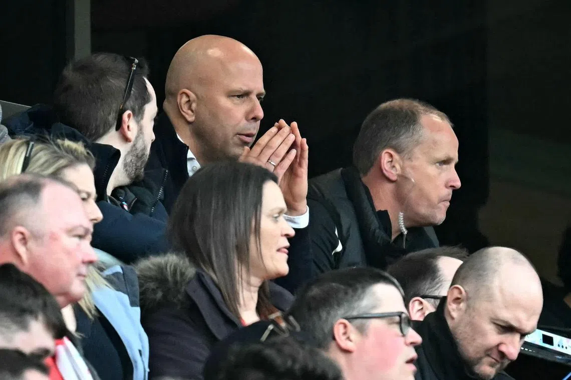 Manager Arne Slot watching from the Anfield stands, following a touchline suspension for a foul-mouthed tirade at officials in Liverpool’s draw with Everton.