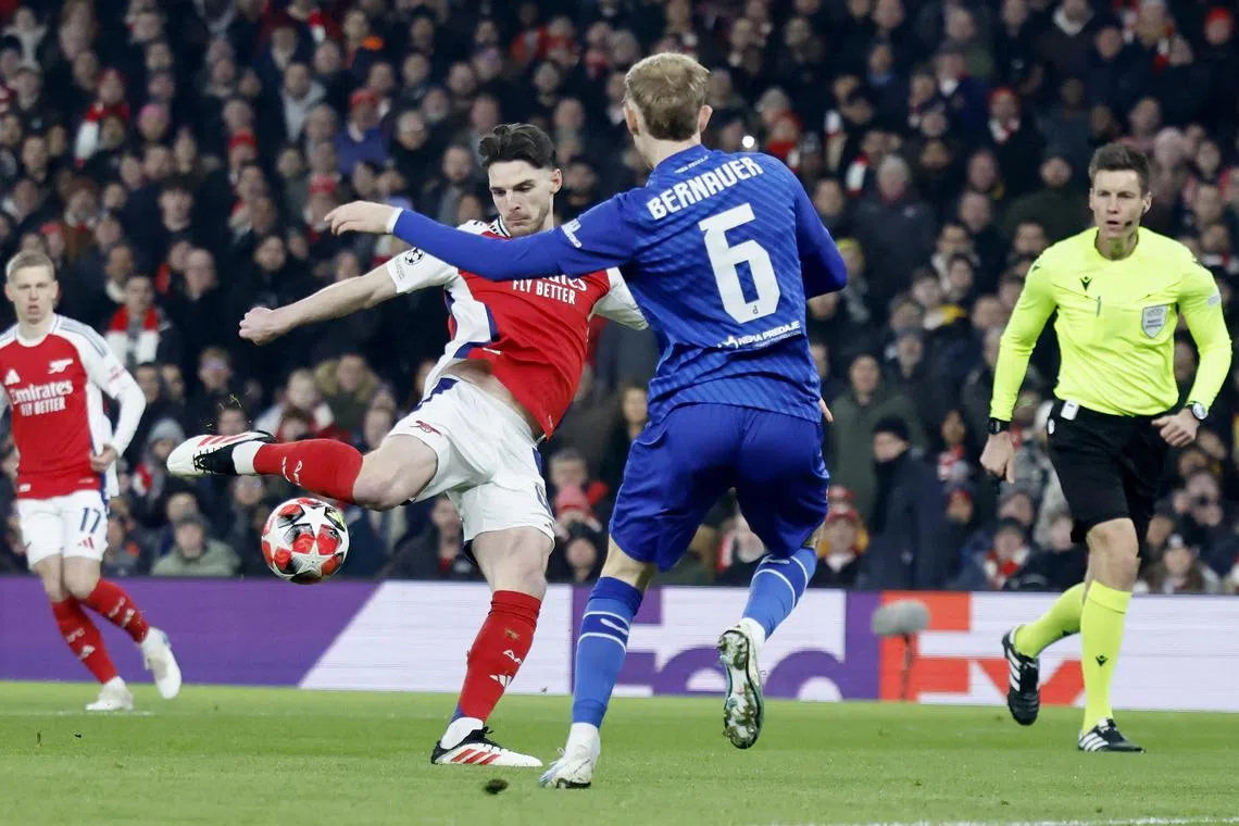 LONDON - Arsenal outclassed Dinamo Zagreb 3-0 to all but secure a spot in the Champions League knockout phase with Declan Rice, Kai Havertz and Martin Odegaard all on target on Jan 22.