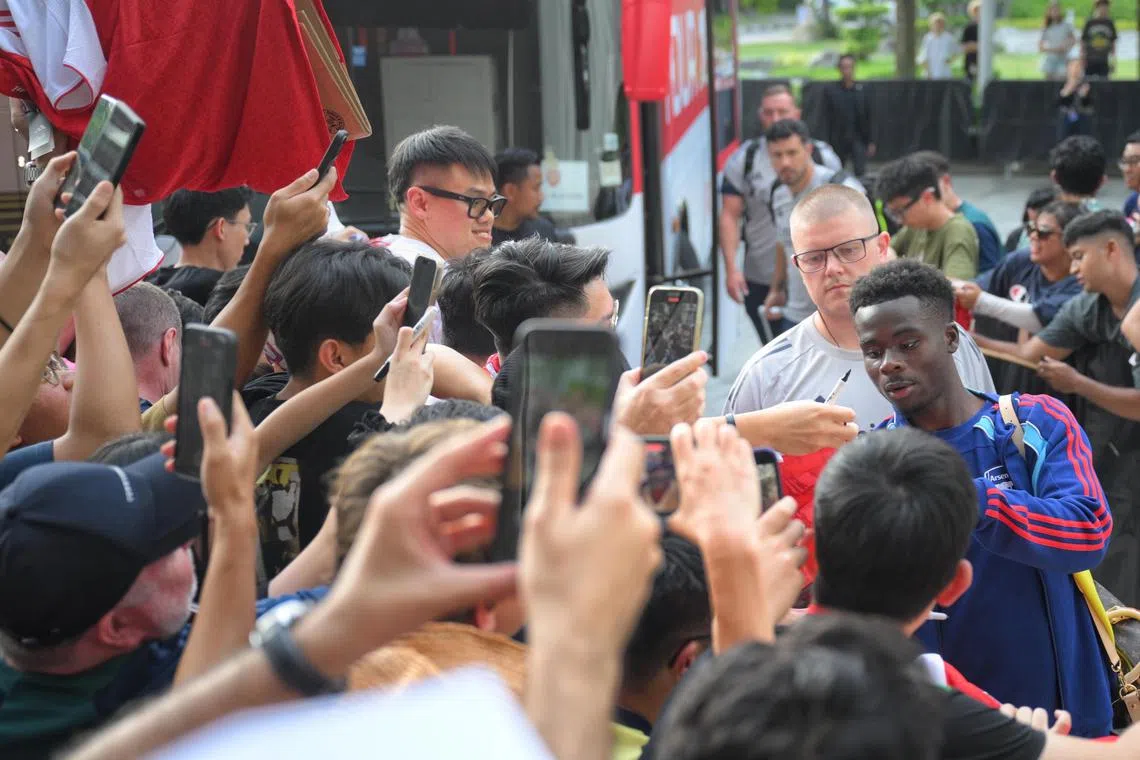 Arsenal’s Bukayo Saka signing autographs and taking photos with fans at W Singapore Sentosa Cove on July 20.