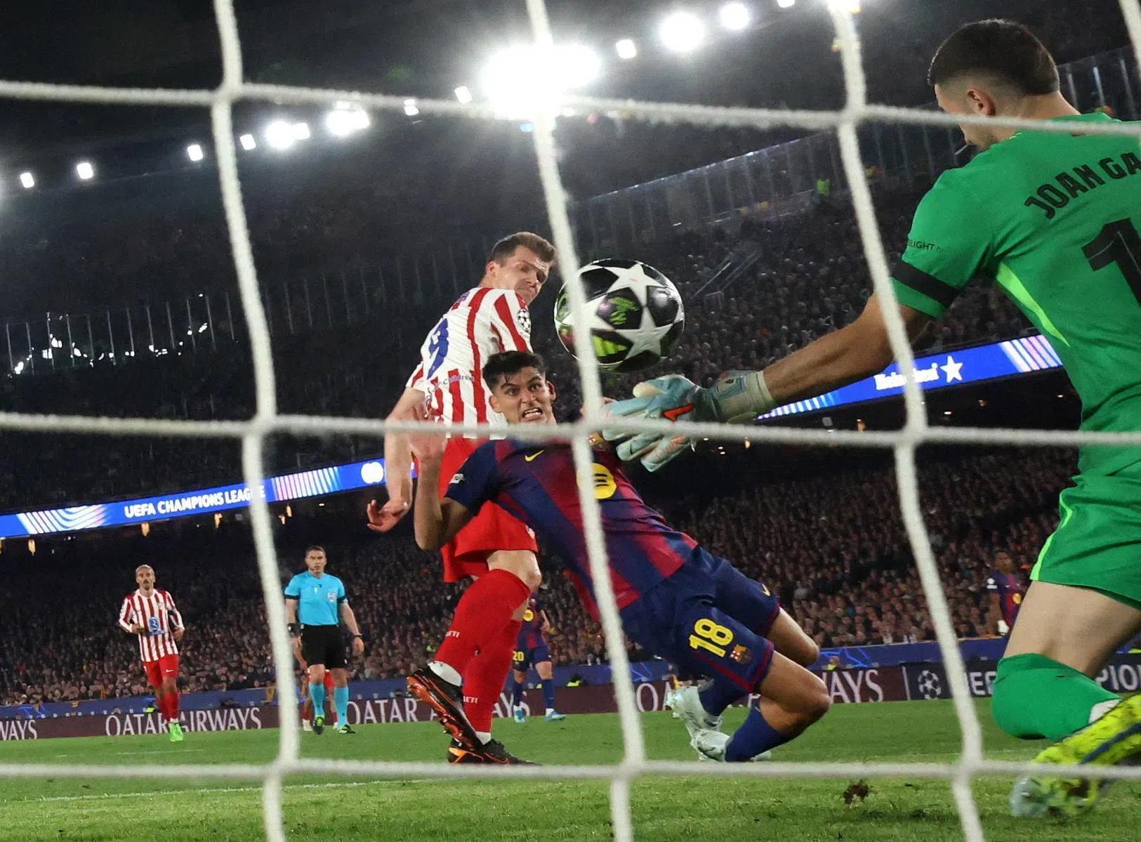 Atletico Madrid's Alexander Sorloth scores their second goal past Barcelona's Joan Garcia.