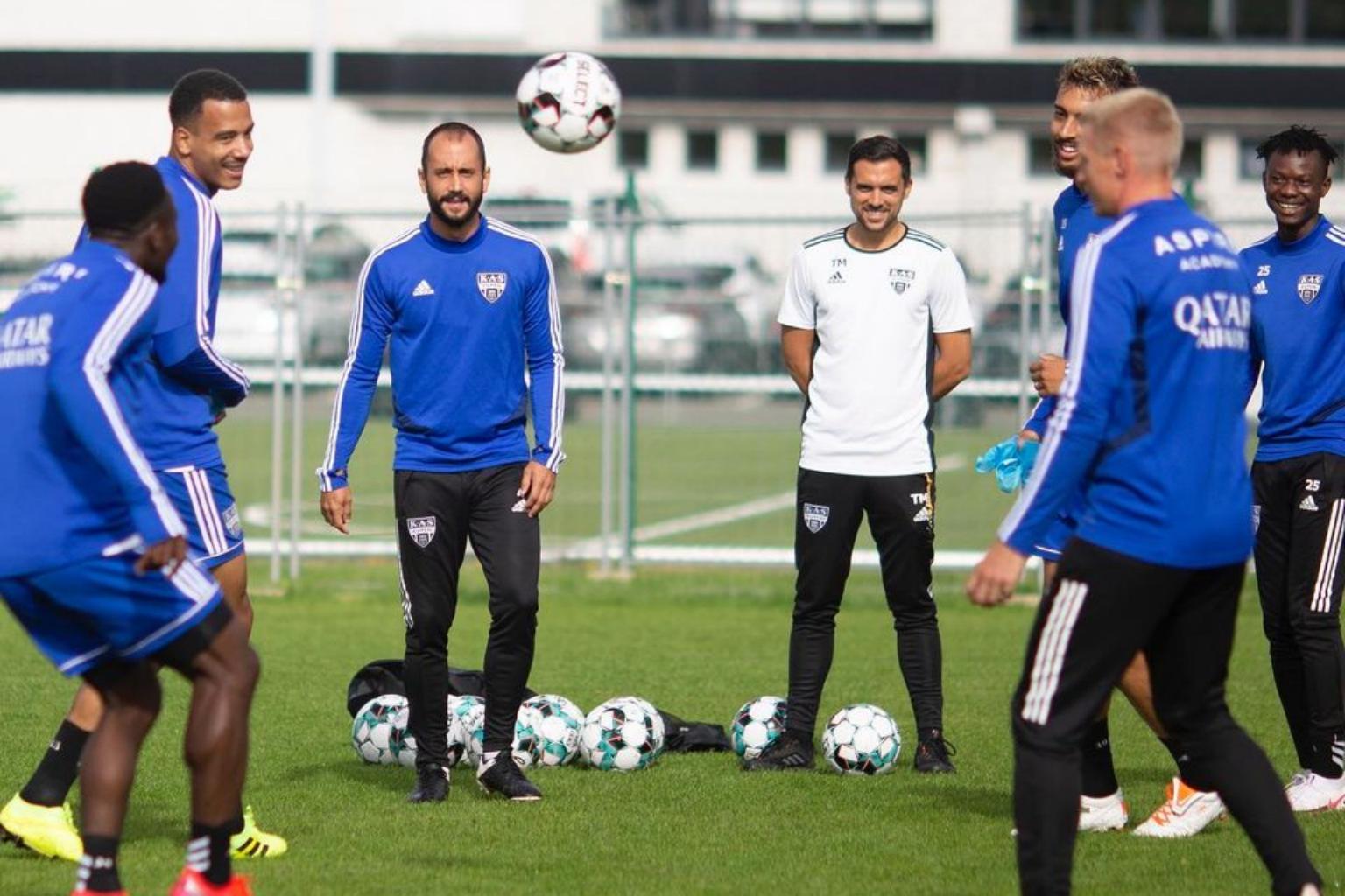 Eupen players attending a training session on Sept 10, 2020. Belgian club Eupen will be facing Ghent in front of a limited number of spectators, on Sept 11, 2020.