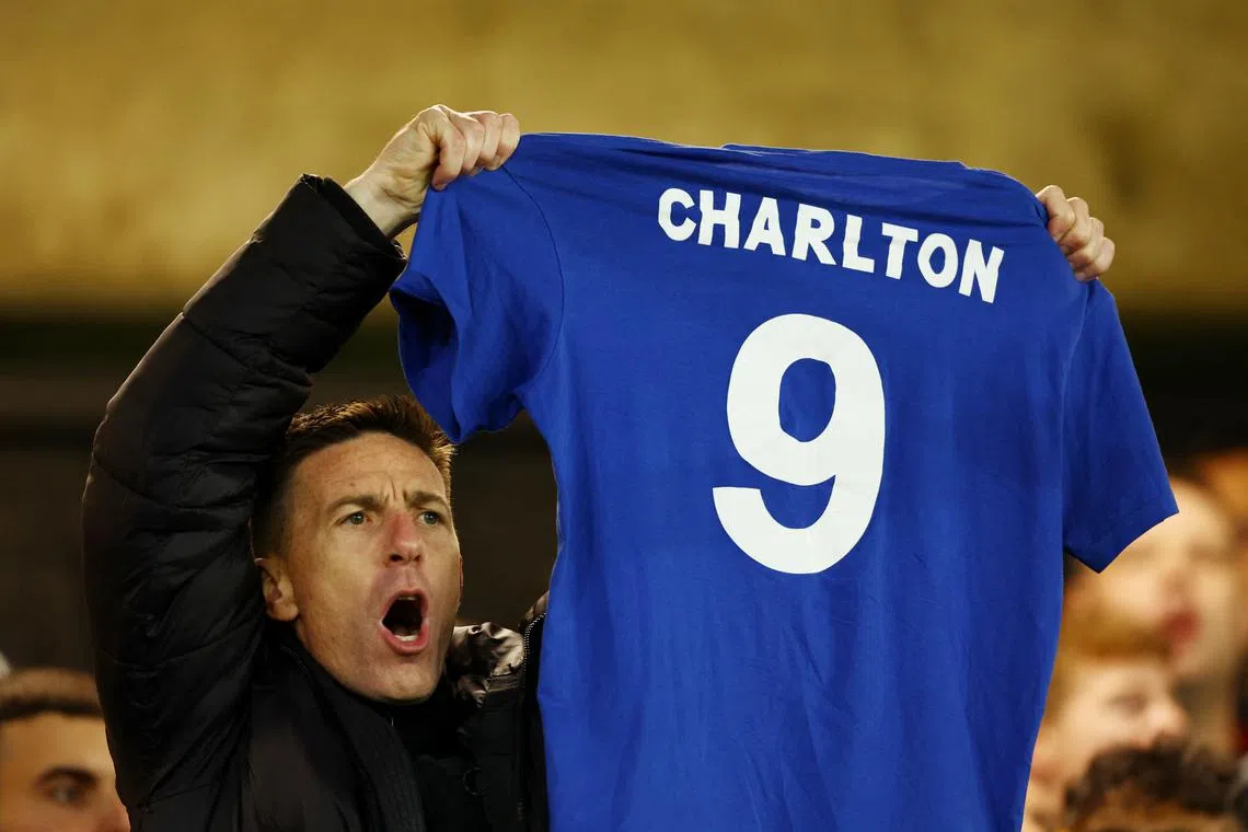 Both teams’ players came out in black armbands after news of Charlton’s death at 86, and fans held up signs and jerseys bearing his name, while a picture of the former attacking midfielder was also displayed on a giant screen.