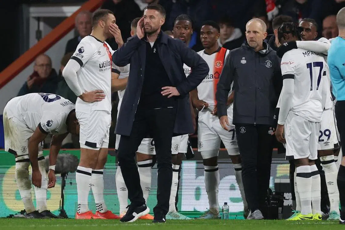 Luton Town manager Rob Edwards looks on as the match is stopped.