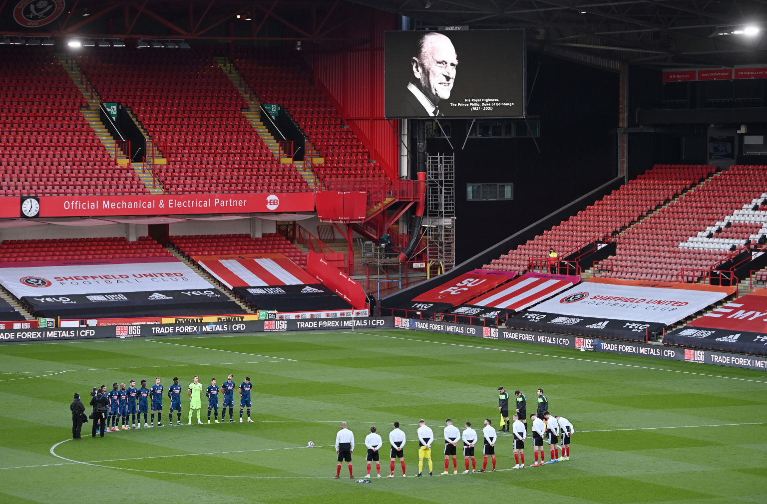 Sheffield United and Arsenal football players observed a two-minute silence for Britain's late Prince Philip, on April 11, 2021.