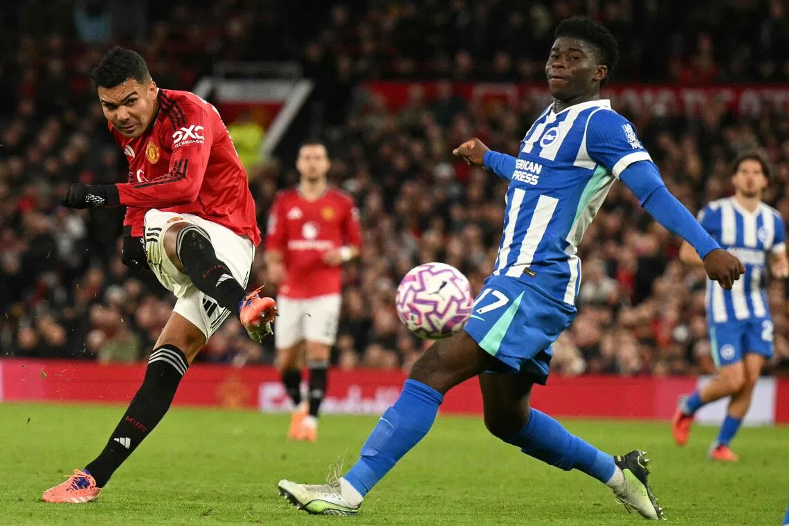 Casemiro scores Manchester United’s second goal of the match against Brighton.