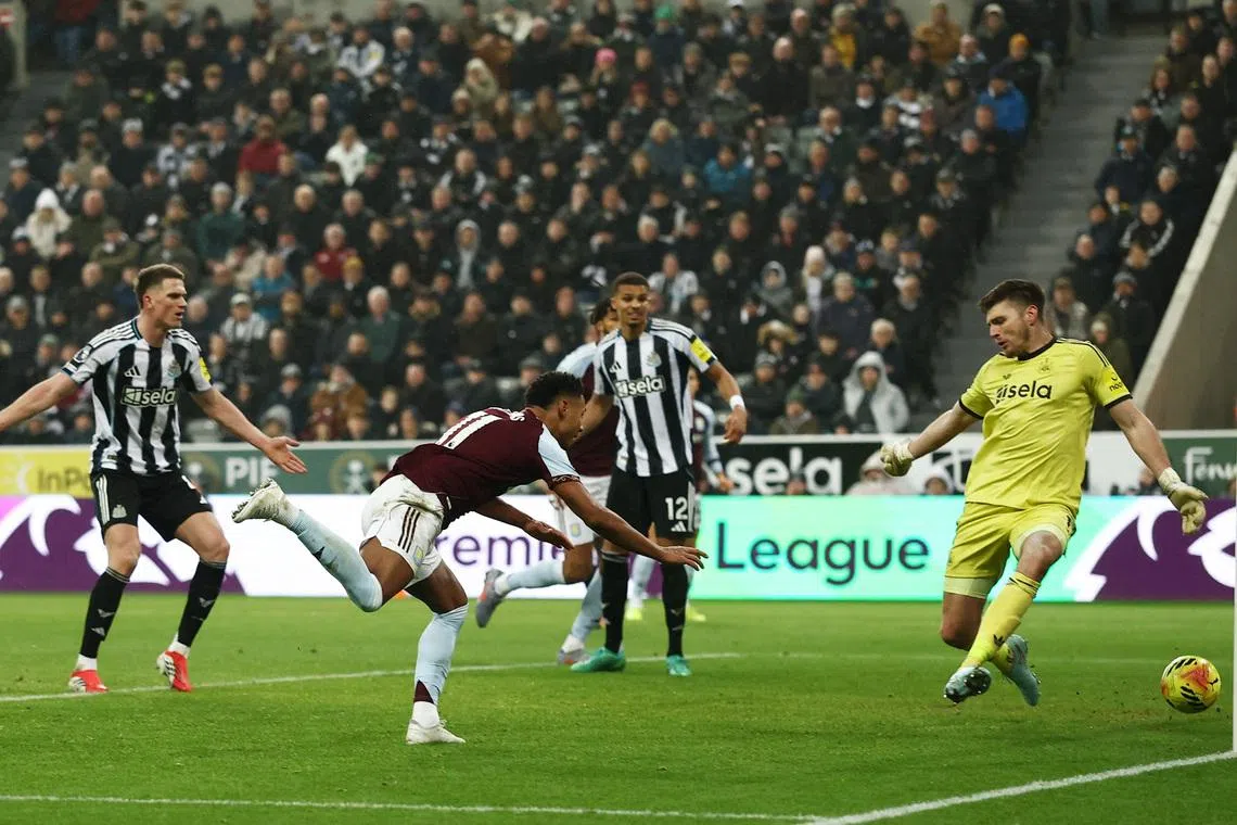 NEWCASTLE, England - A brilliant first-half strike from Emiliano Buendia and a late goal by Ollie Watkins gave Aston Villa a 2-0 Premier League win at Newcastle United on Jan 25 that kept the pressure on second-placed Manchester City as the title race gathers pace.