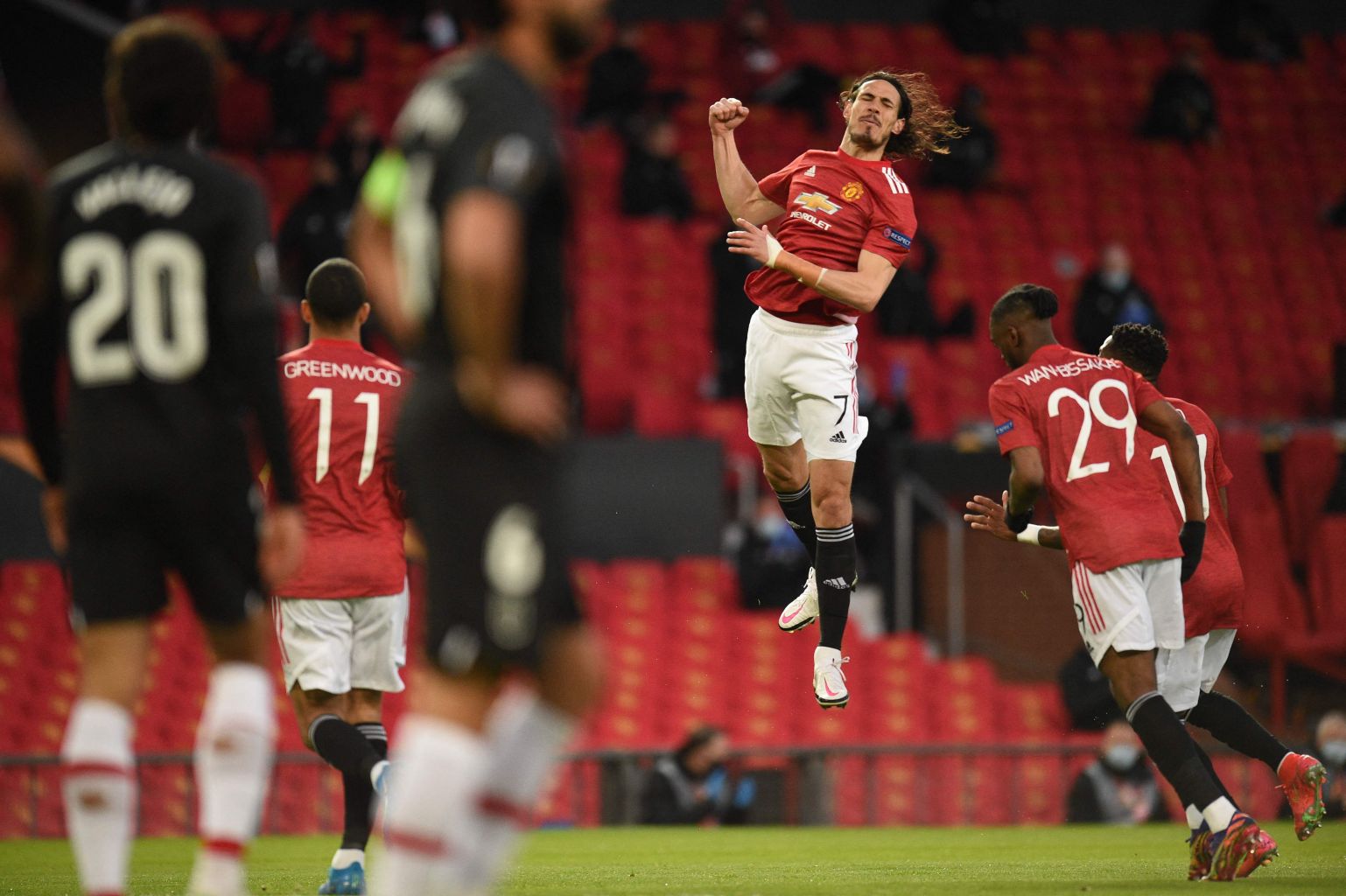 Edinson Cavani celebrating after scoring United's opener in the Europa League quarter-final second leg against Granada on April 15, 2021.