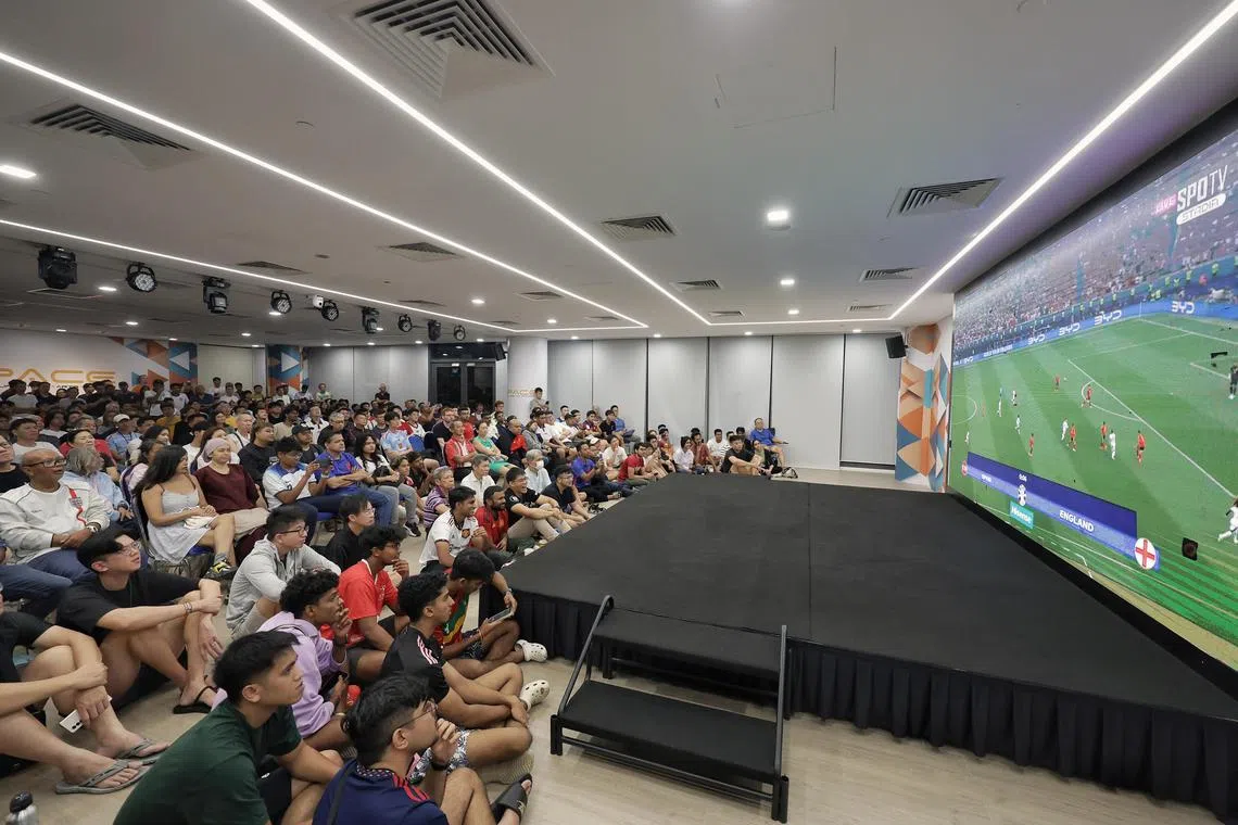 Fans watching a live screening of the Euro 2024 final between Spain and England at L2 Space at Our Tampines Hub.