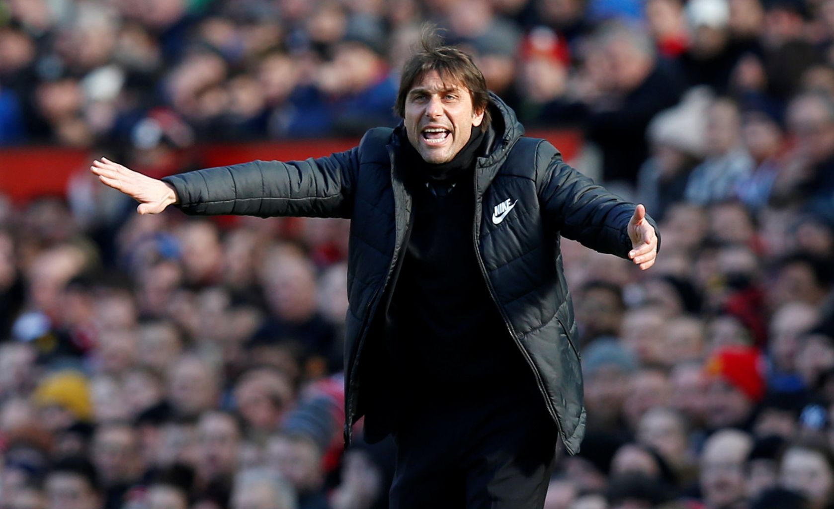 Conte gestures during Chelsea's match against Manchester United on Feb 25, 2018.