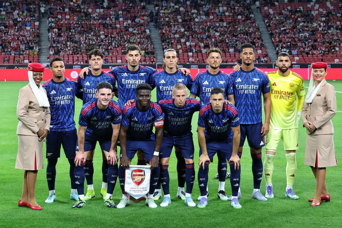 The starting 11 for Arsenal against AC Milan in a pre-season friendly at the National Stadium on July 23.