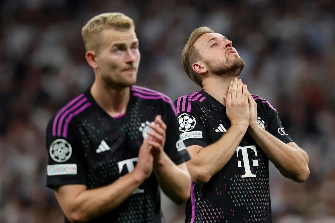 Bayern Munich’s Matthijs de Ligt (left) and Harry Kane after the match.