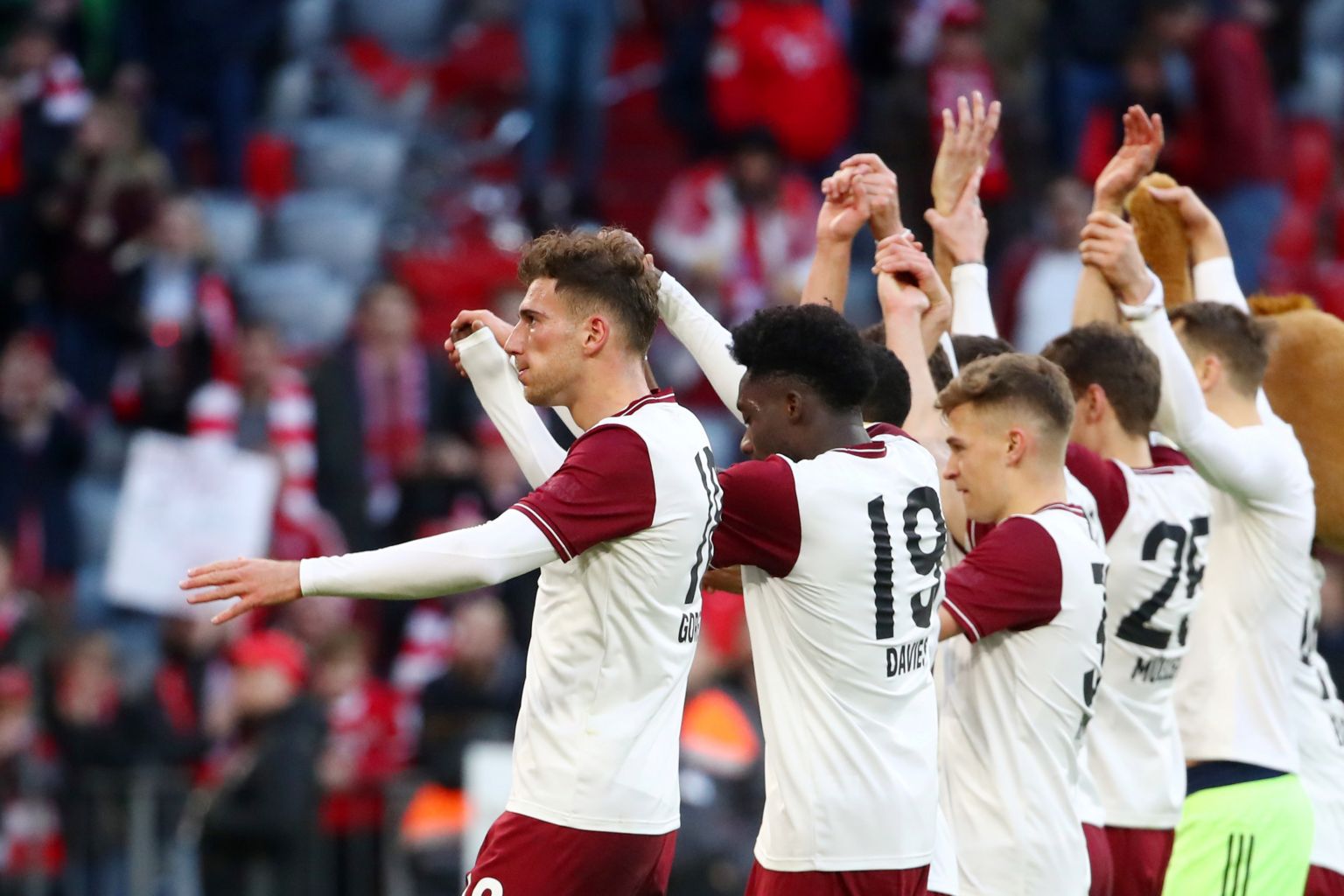 Bayern Munich players celebrate after the match, on March 8, 2020.