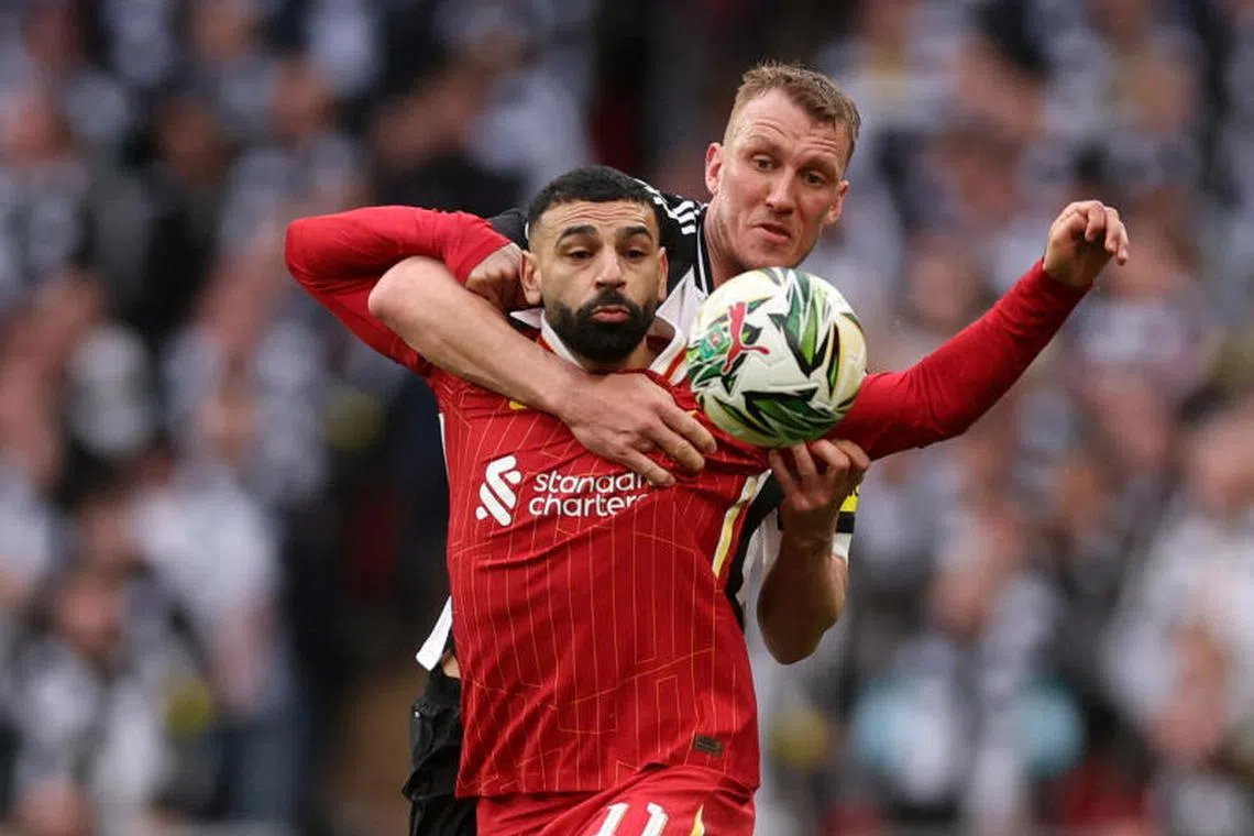 Liverpool’s Mohamed Salah in action with Newcastle United’s Dan Burn.