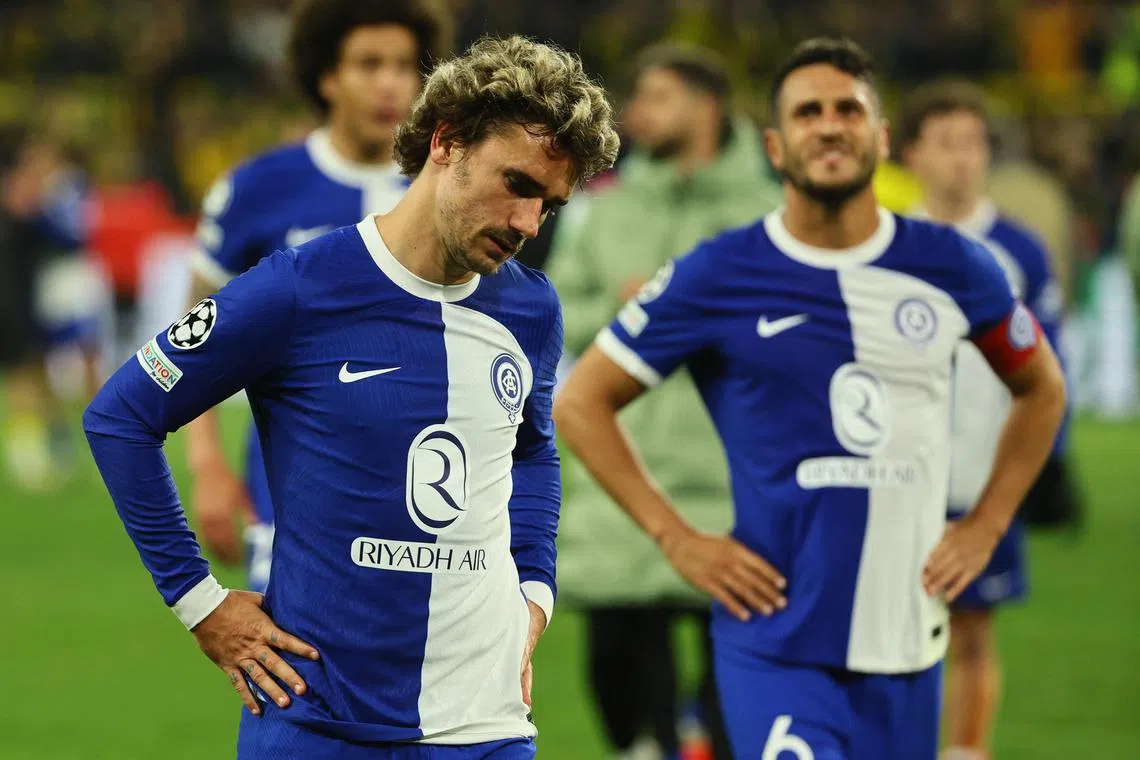 Atletico Madrid’s Antoine Griezmann looks dejected after the match.