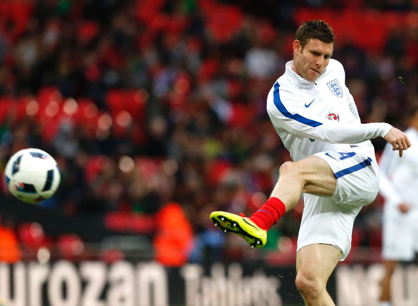 England's midfielder James Milner warms up before the friendly football match between England and Portugal at Wembley stadium in London on June 2, 2016.