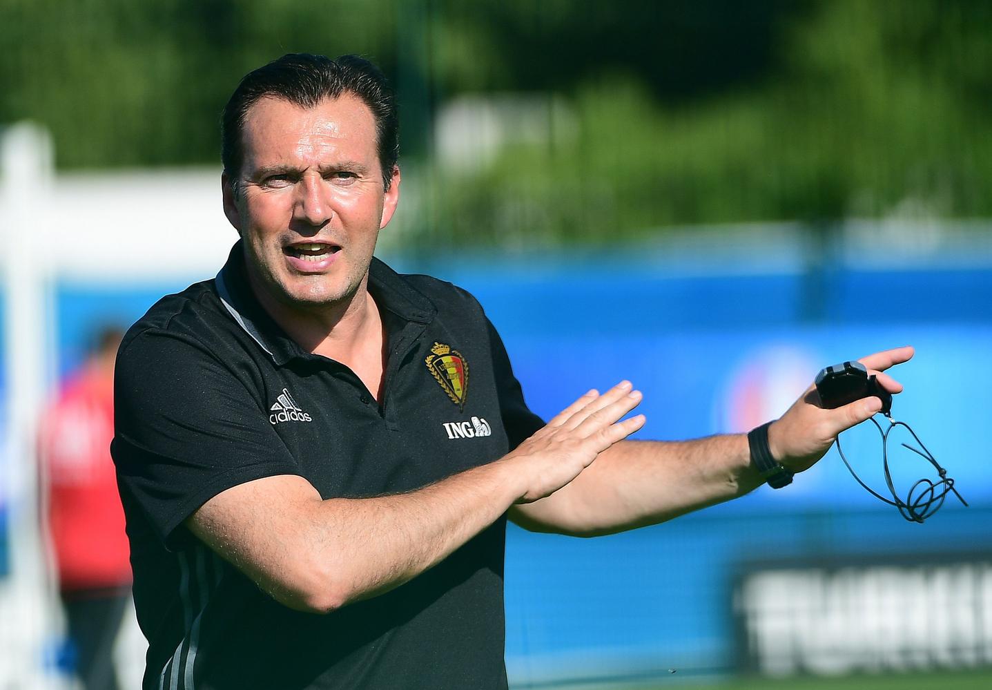 Belgium coach Marc Wilmots at a training session during Euro 2016 June 23.