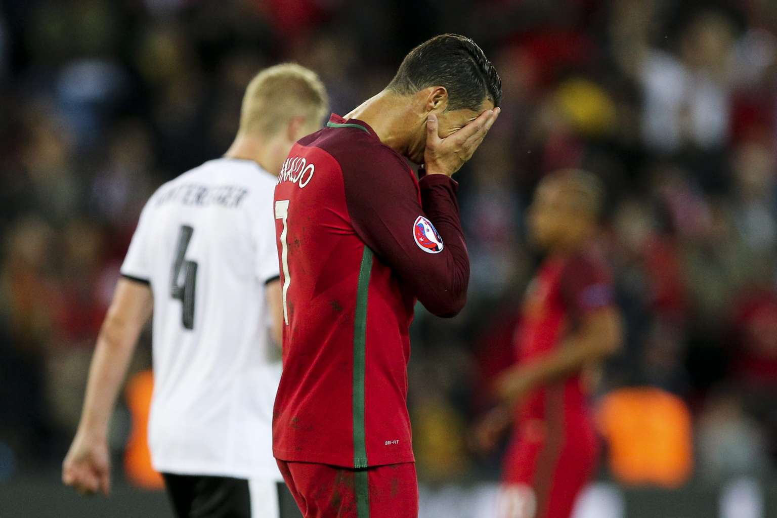 Portugal's Cristiano Ronaldo reacting after missing a penalty during the Euro 2016 match against Austria at Parc des Princes in Paris, France, on June 18, 2016.