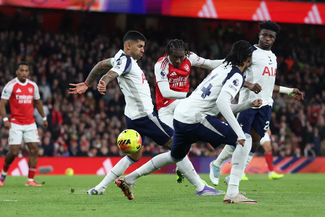 For once, Arsenal found space in the Tottenham area with Mikel Merino's chipped pass controlled by Trossard with his back to goal. The Belgian took a touch and his shot on the turn nicked off Micky van de Ven to give Vicario no chance.
