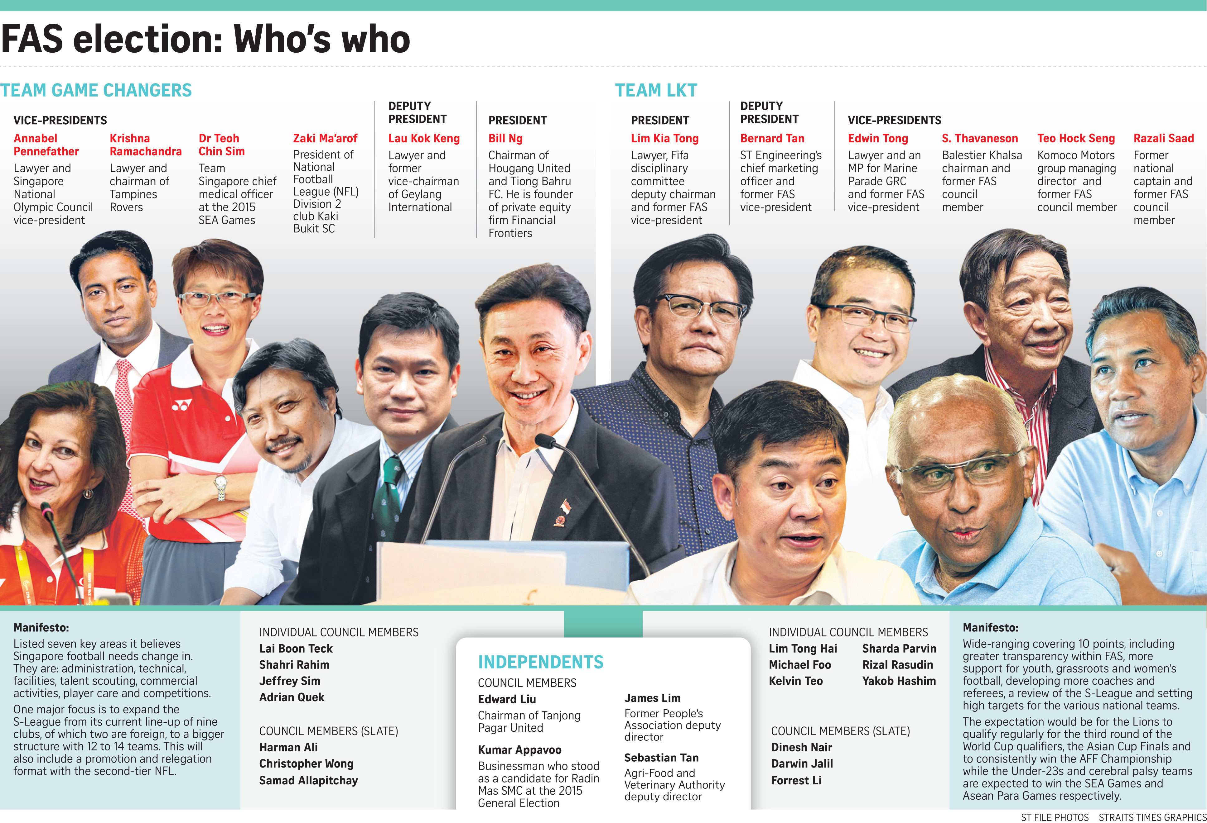 The Straits Times looks at both teams and their manifestos plus the four independent candidates.