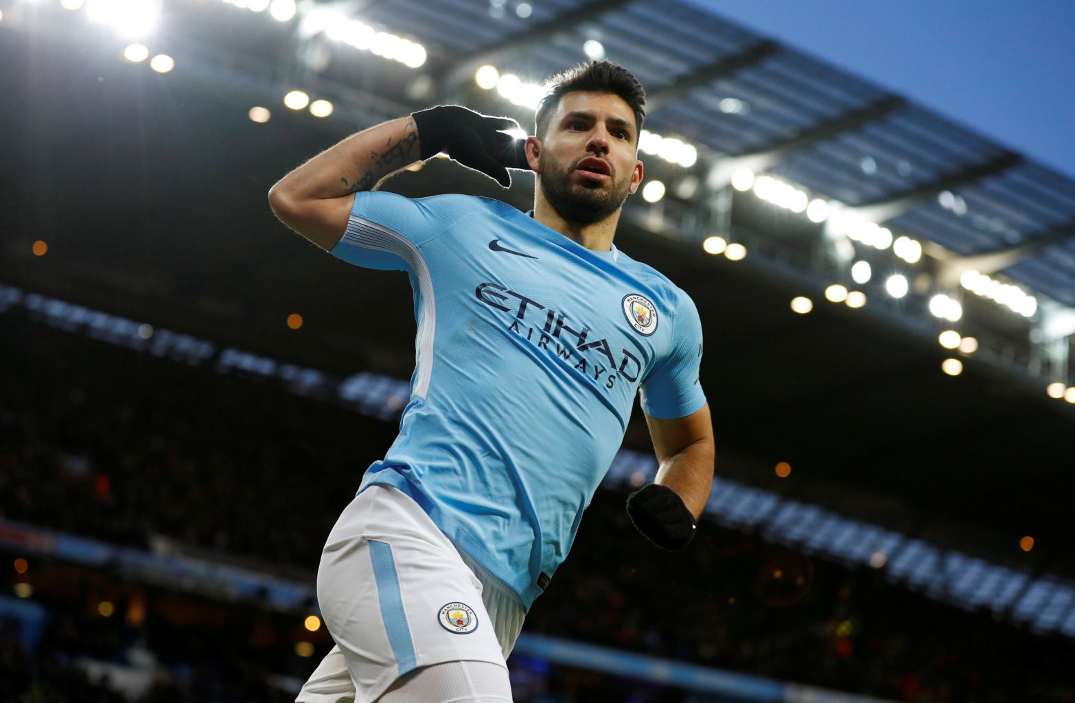Manchester City's Sergio Aguero celebrates scoring their second goal.