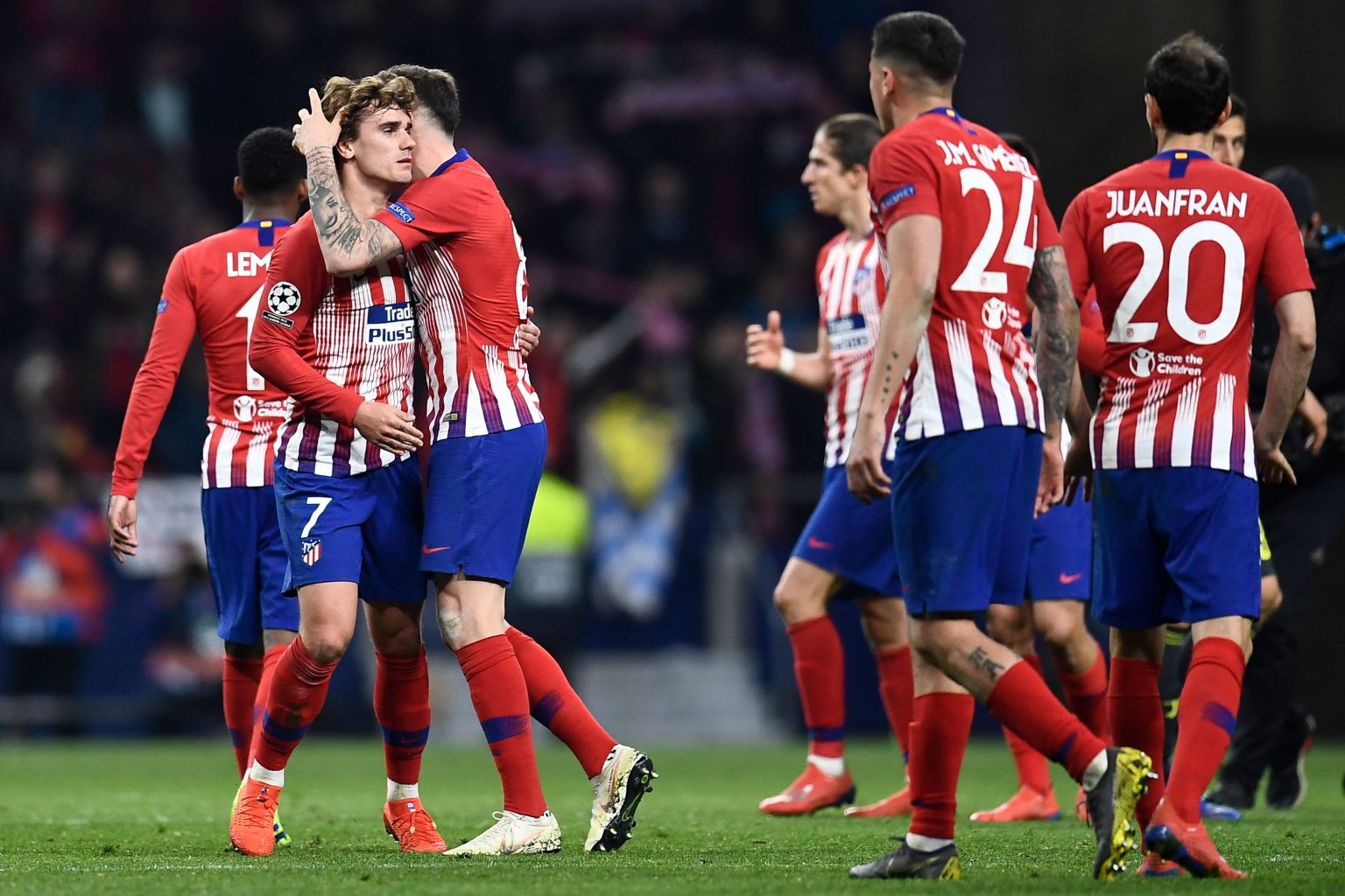 Atletico Madrid's players celebrate at the end of the match.